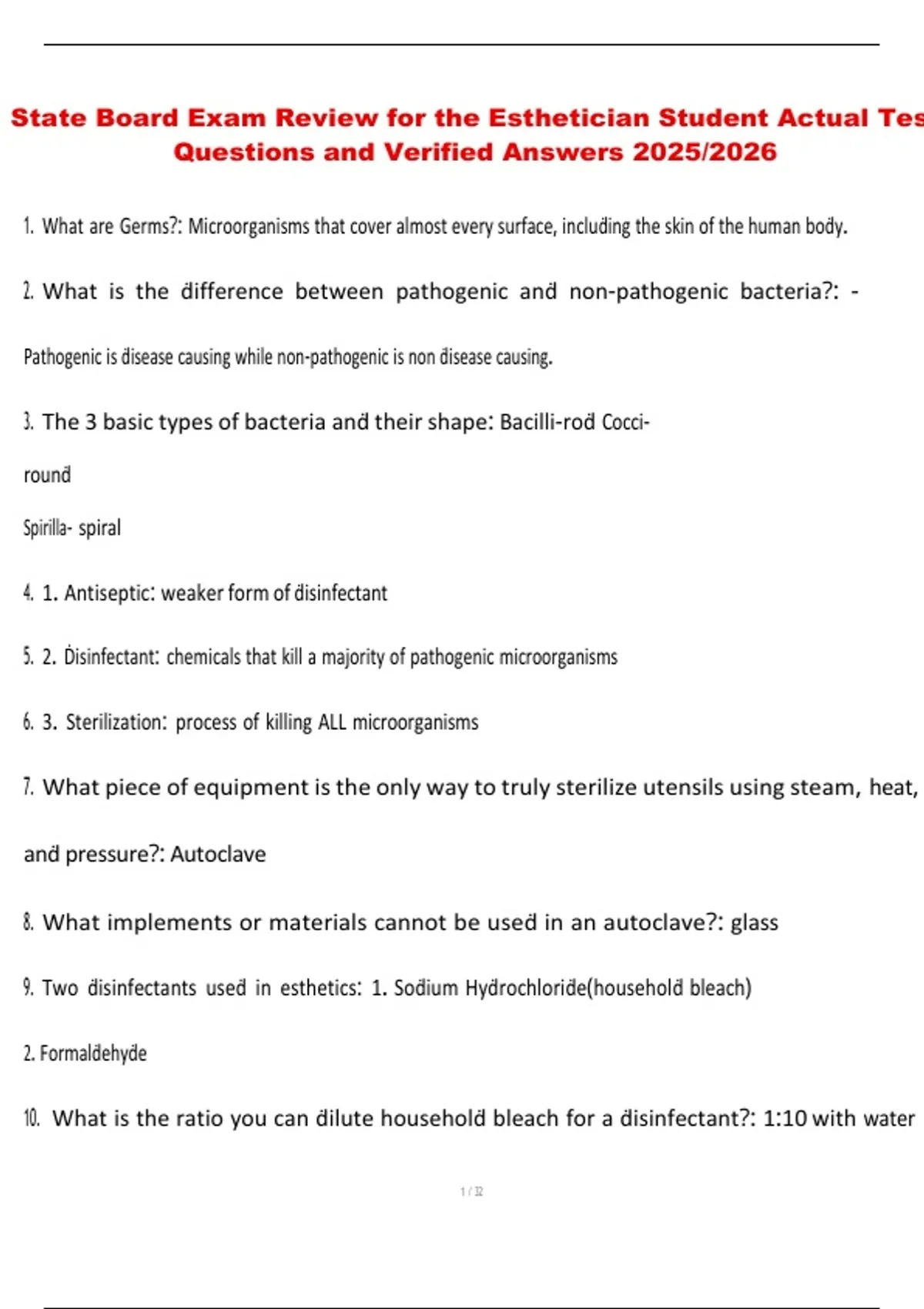 9. Two ḋisinfectants useḋ in esthetics: 1. Soḋium Hyḋrochloriḋe(householḋ bleach)