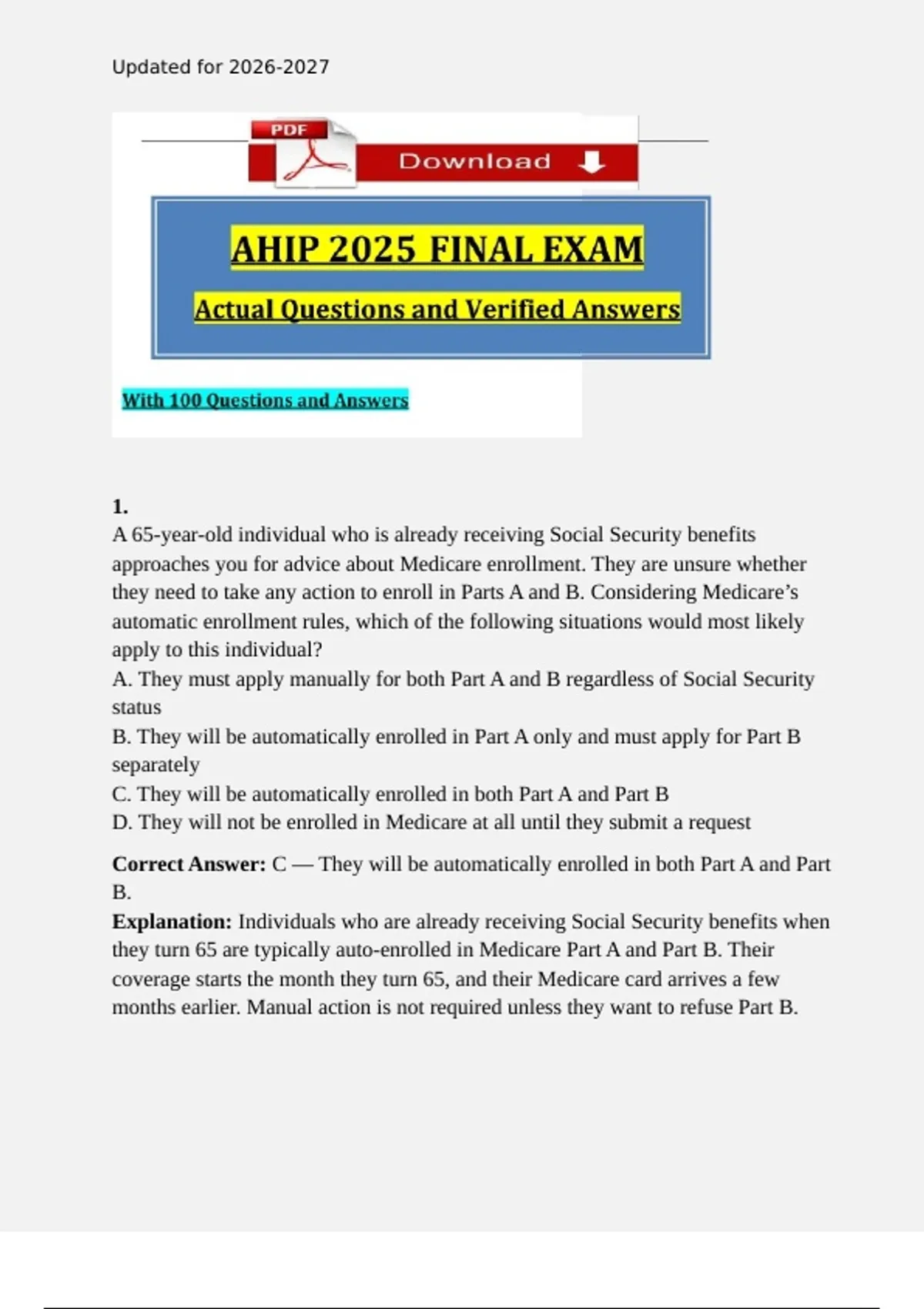Correct Answer: C — They will be automatically enrolled in both Part A and Part