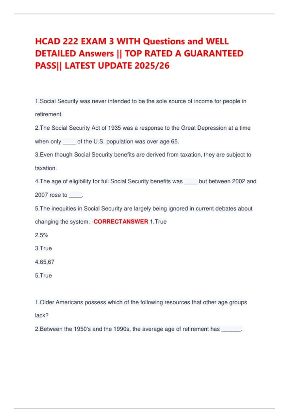 HCAD 222 EXAM 3 WITH Questions and WELL