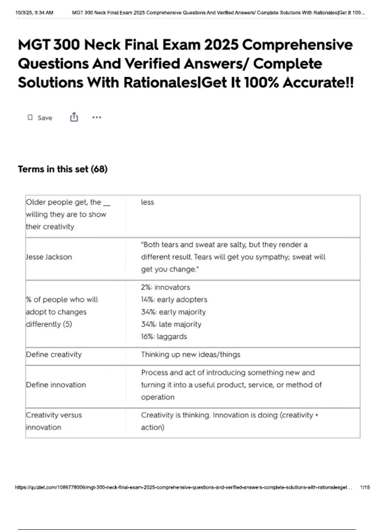 MGT 300 Neck Final Exam 2025 Comprehensive Questions And Verified Answers/ Complete Solutions With Rationales|Get It 100% Accurate!!