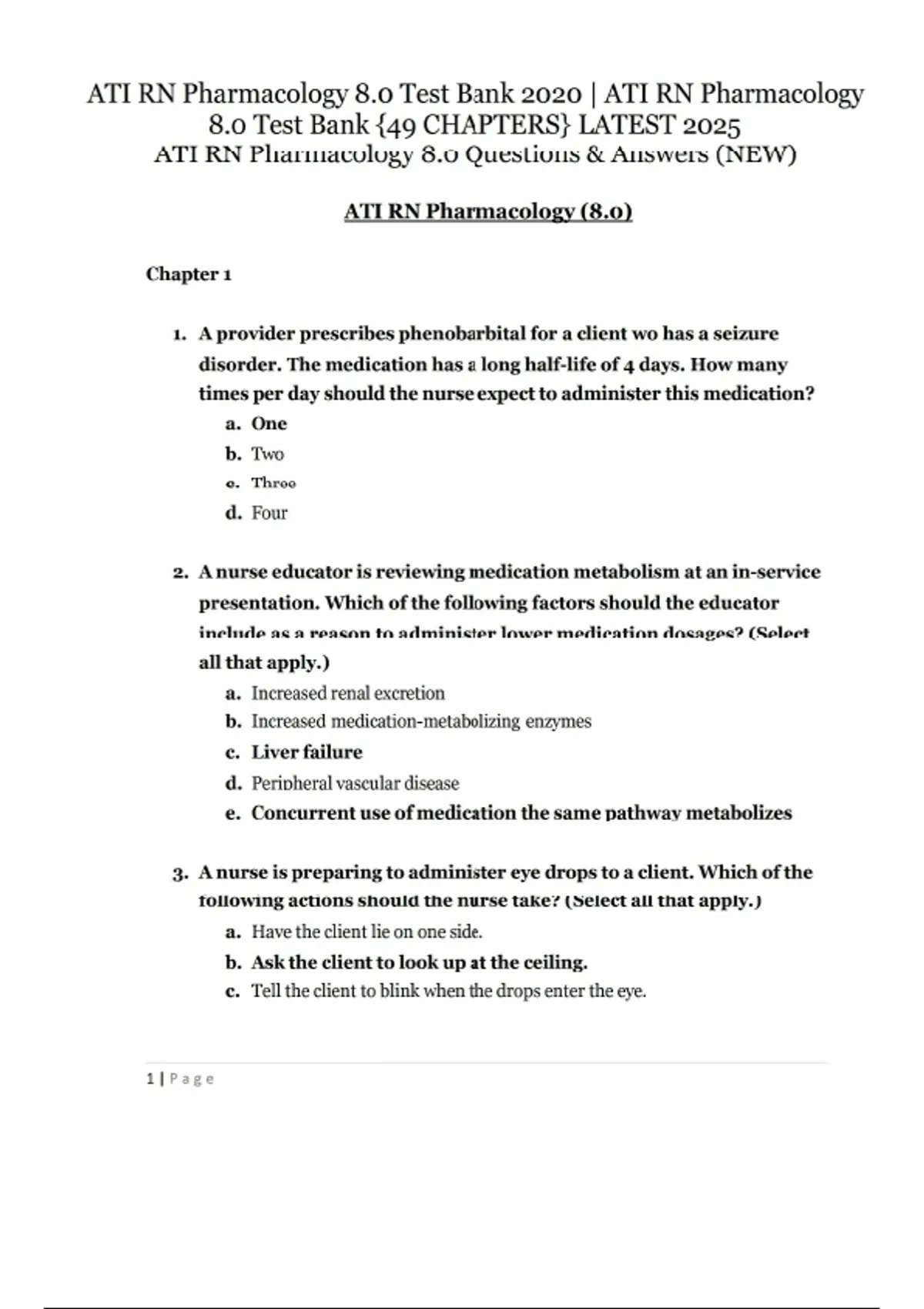 ATI RN Pharmacology 8.0 Test Bank 2020 | ATI RN Pharmacology 8.0 Test Bank {49 CHAPTERS} LATEST 2025 ATI RN Pharmacology 8.0 Questions & Answers (NEW)