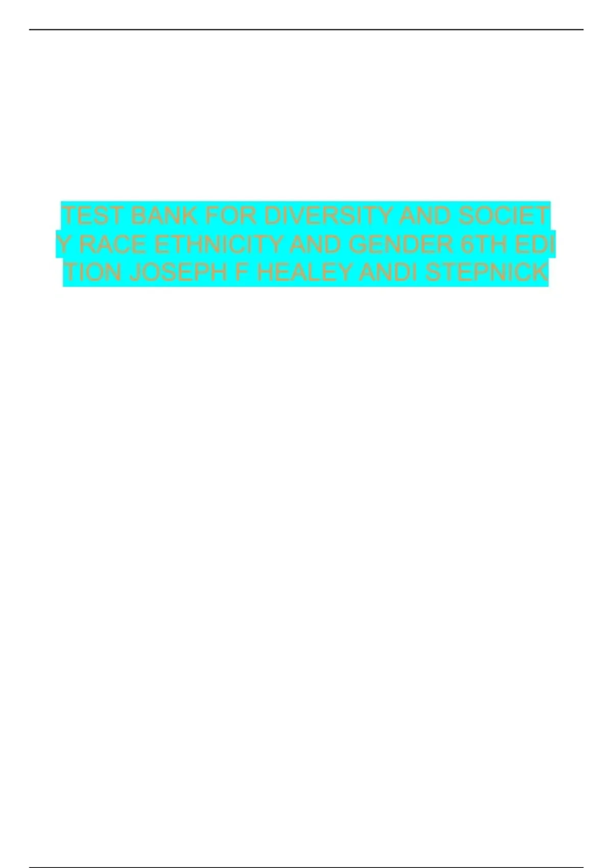 TEST BANK FOR DIVERSITY AND SOCIETY RACE ETHNICITY AND GENDER 6TH EDITION JOSEPH F HEALEY ANDI STEPNICK
