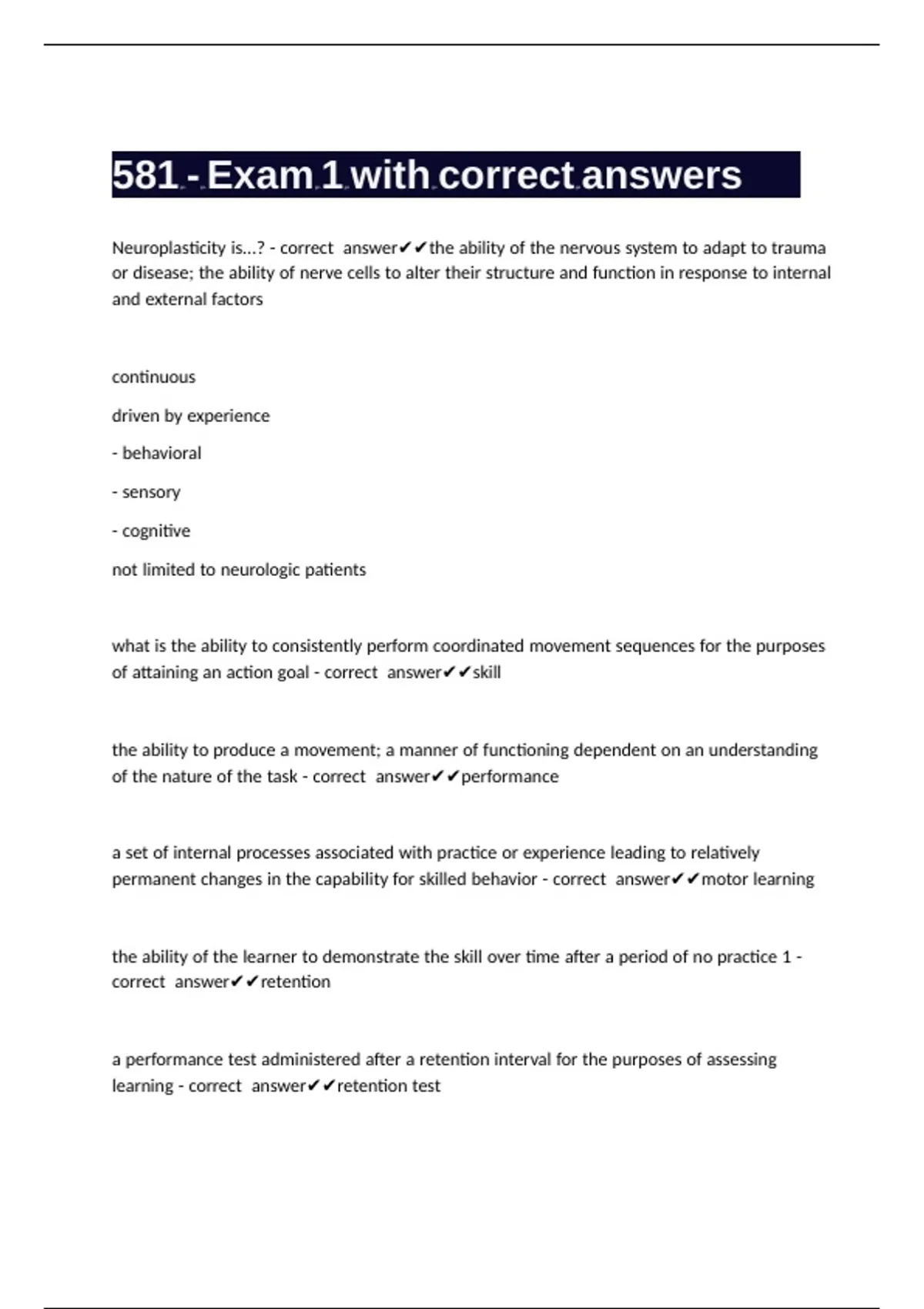 581 - Exam 1 with correct answers