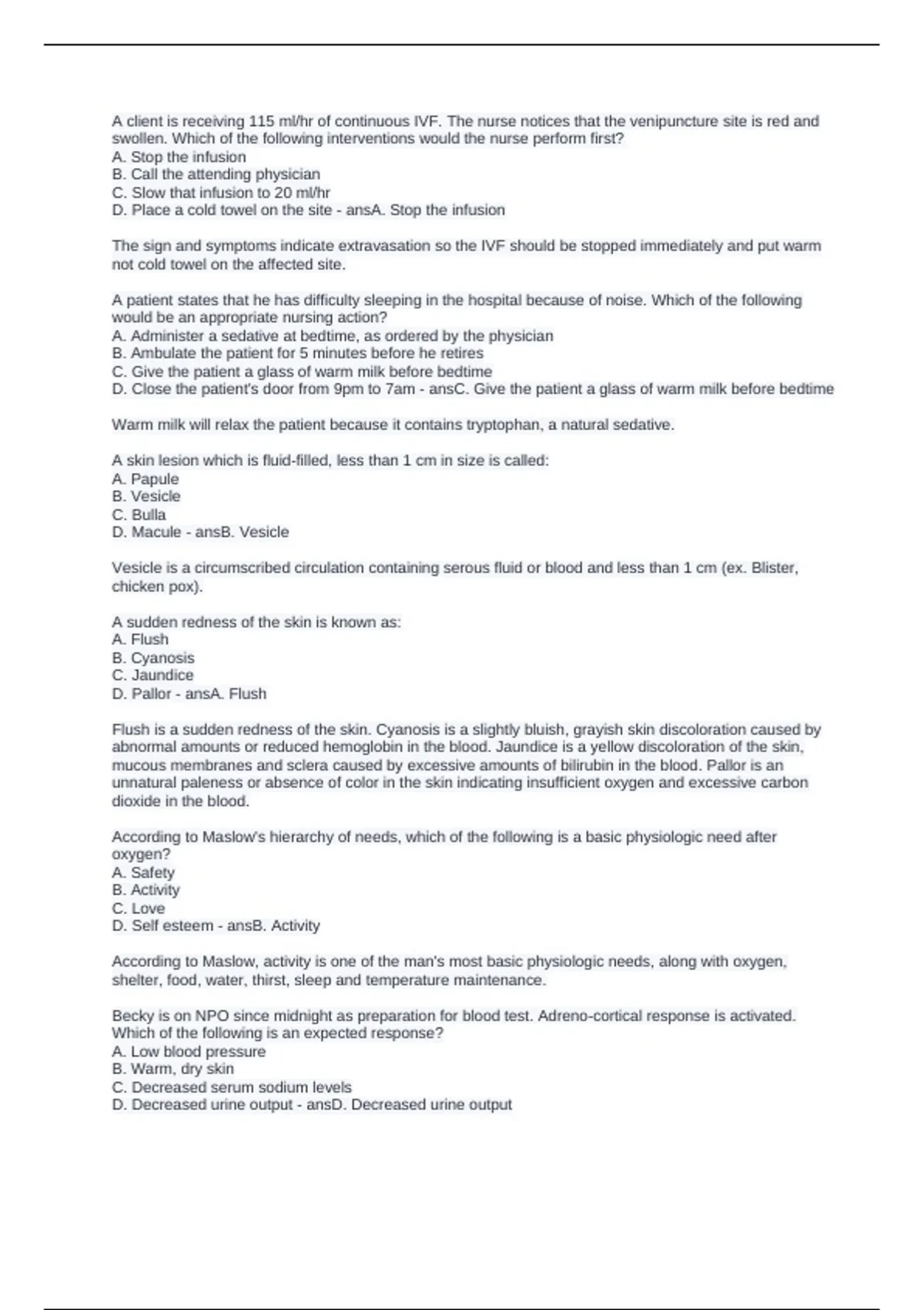 D. Pallor - ansA. Flush