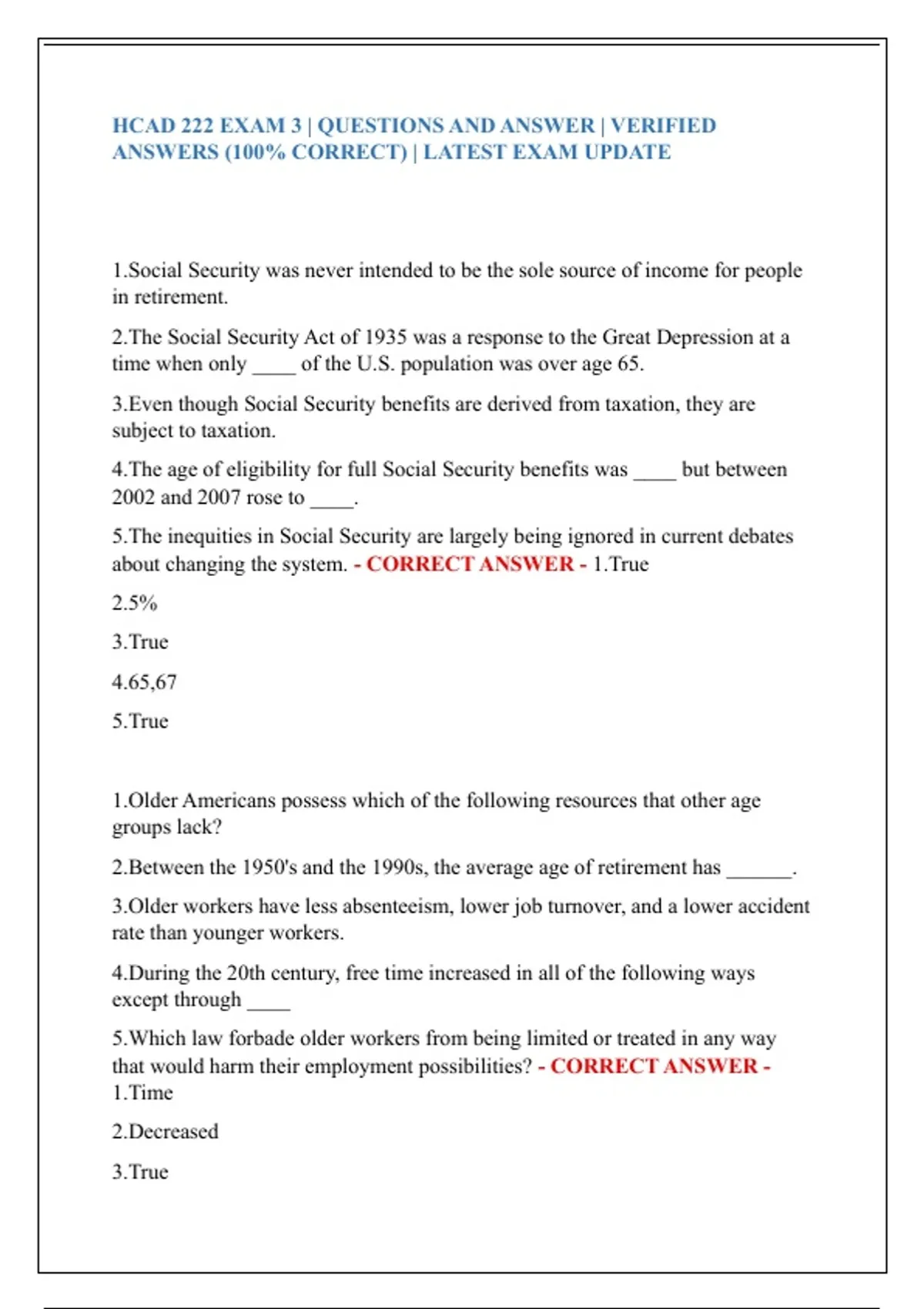 HCAD 222 EXAM 3 | QUESTIONS AND ANSWER | VERIFIED