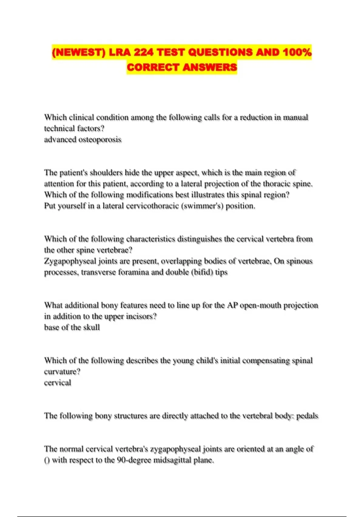 (NEWEST) LRA 224 TEST QUESTIONS AND 100%