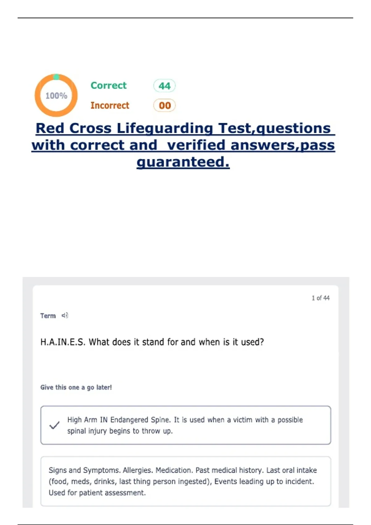 ,Red Cross Lifeguarding Test,questions with correct and verified answers,pass