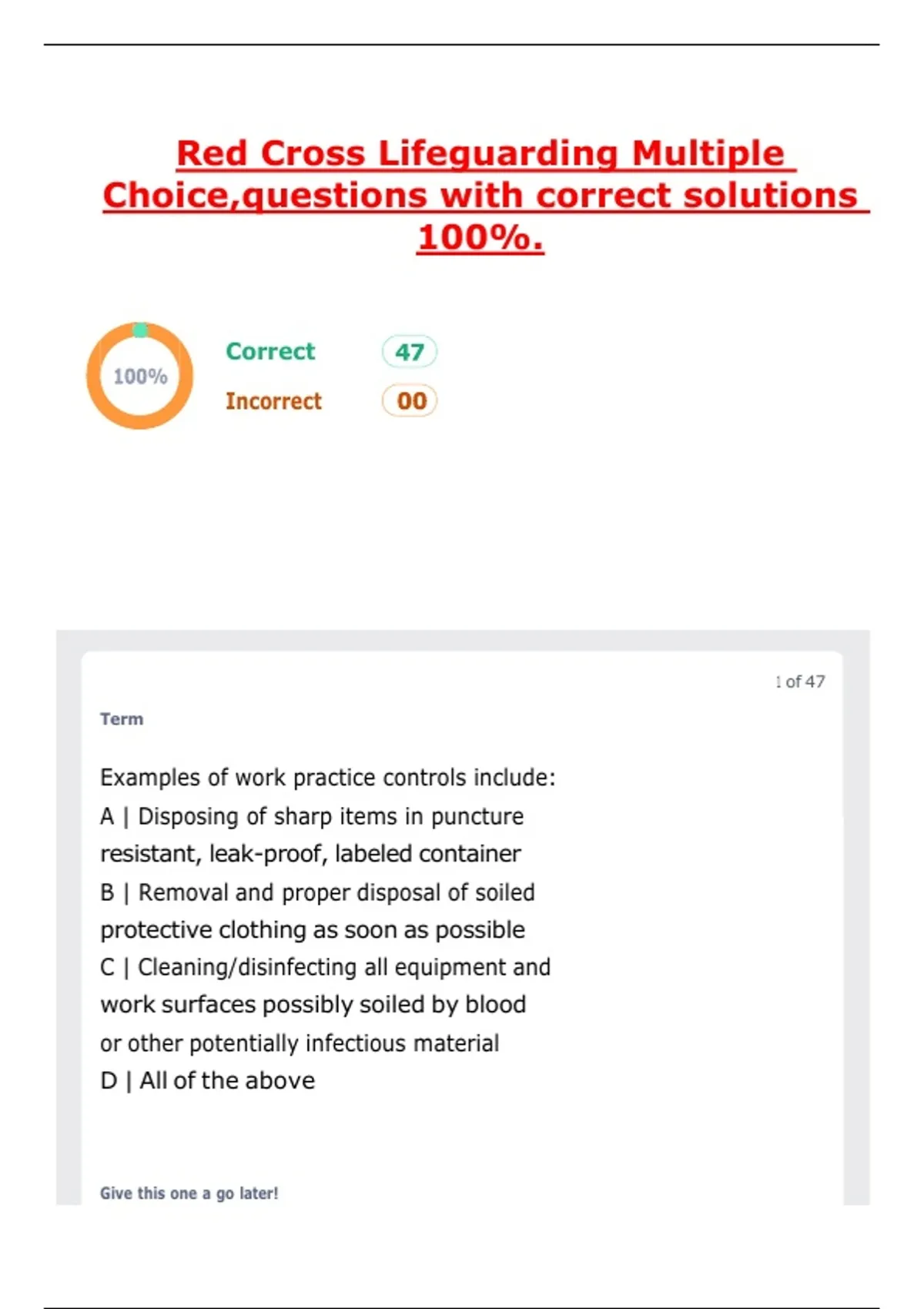 , Red Cross Lifeguarding Multiple Choice,questions with correct solutions 100%.