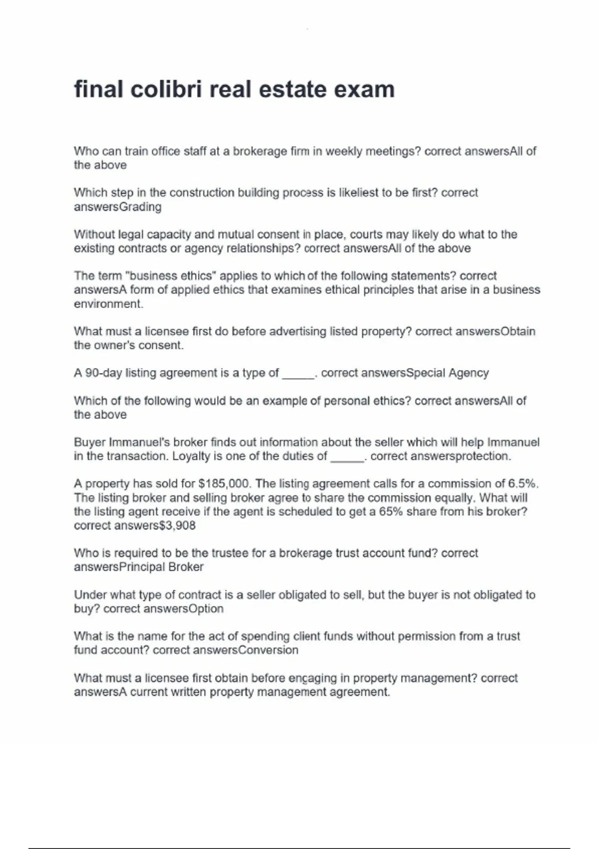 Final Colibri Real Estate Exam Questions and Answers.Final Colibri Real Estate Exam Questions and Answers.
