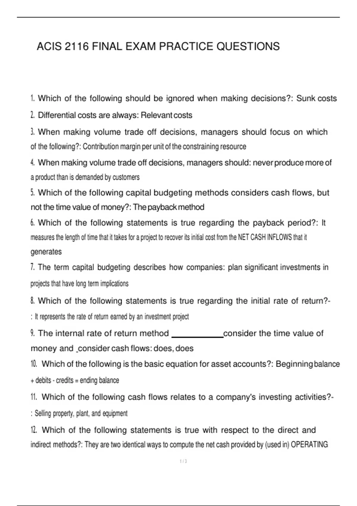 ACIS 2116 FINAL EXAM PRACTICE QUESTIONS
