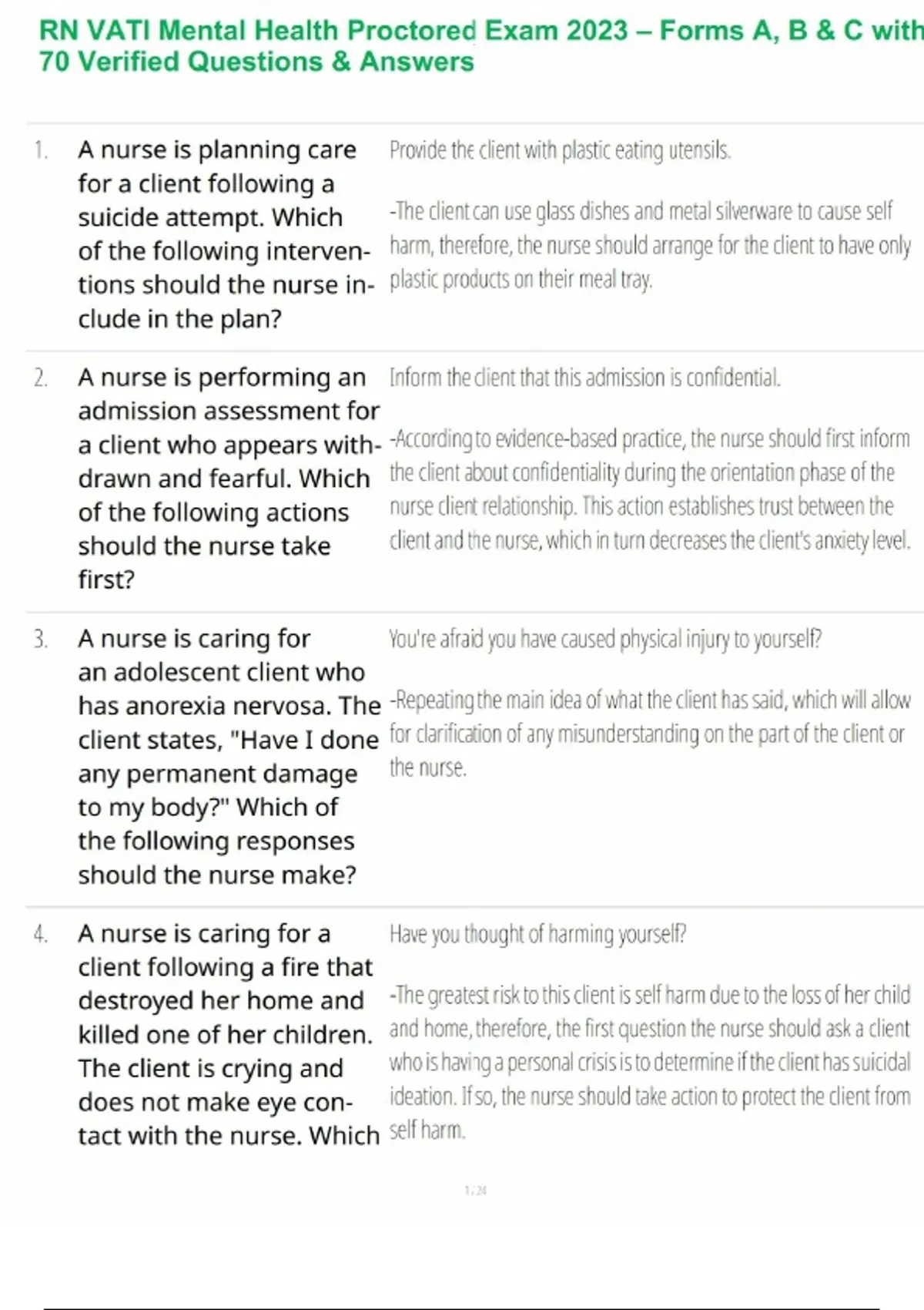 Get fully prepared for the RN VATI Mental Health Proctored Exam (2023). Includes Forms A, B, and C, each with 70 actual exam-style questions and detailed correct answers. A complete resource for nursing students who want clear explanations, reliable content, and stronger exam confidence.