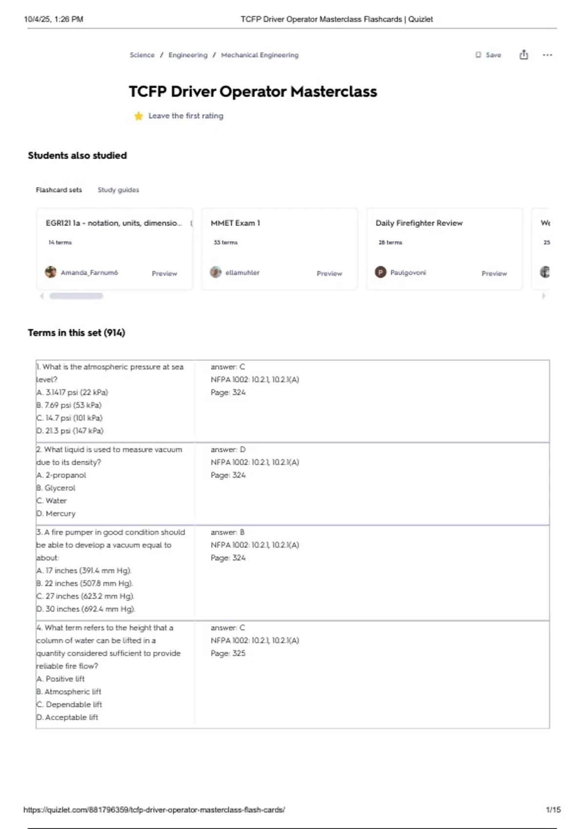 , 10/4/25, 1:26 PM TCFP Driver Operator Masterclass Flashcards | Quizlet