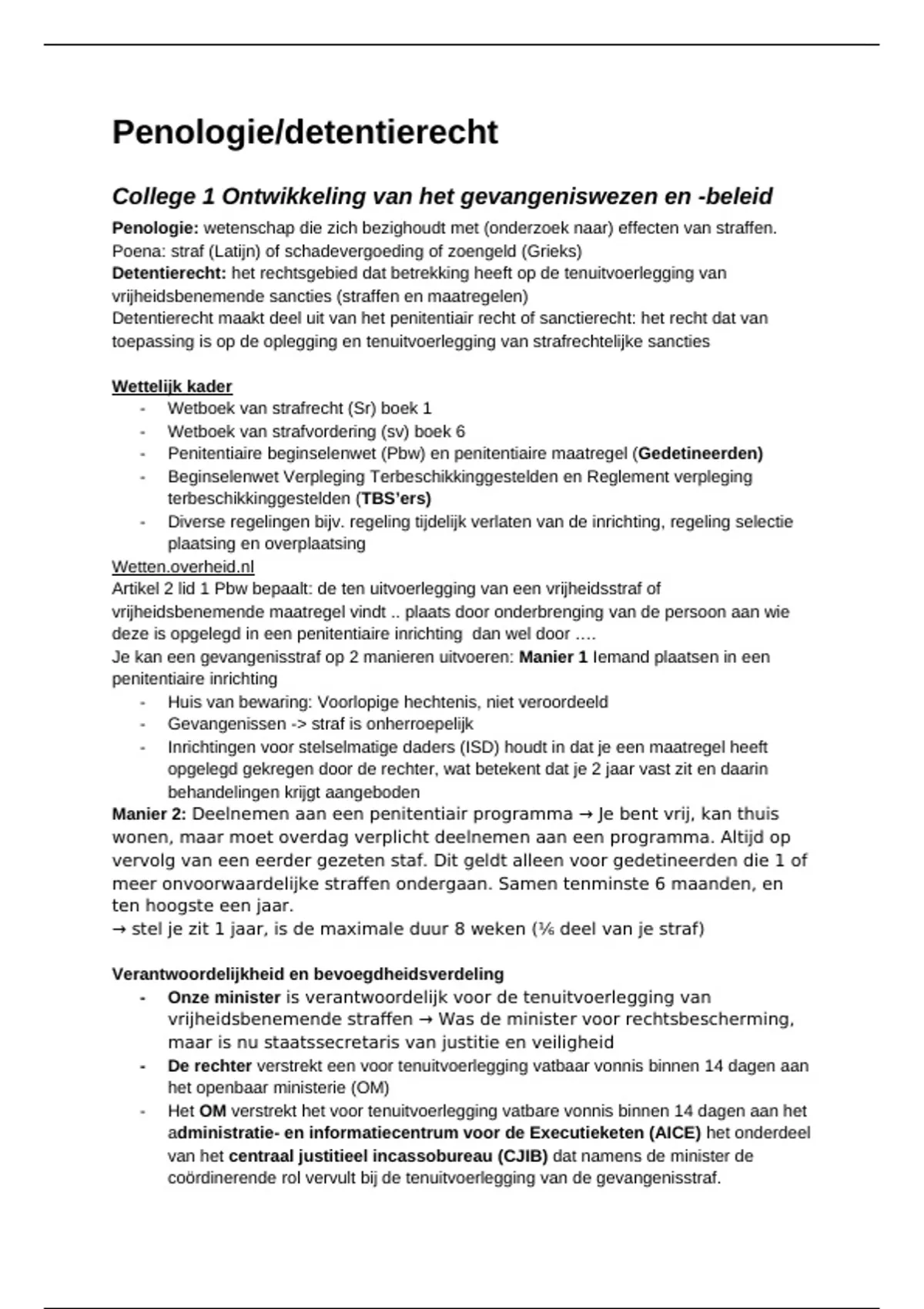 College aantekeningen Penologie/detentierecht