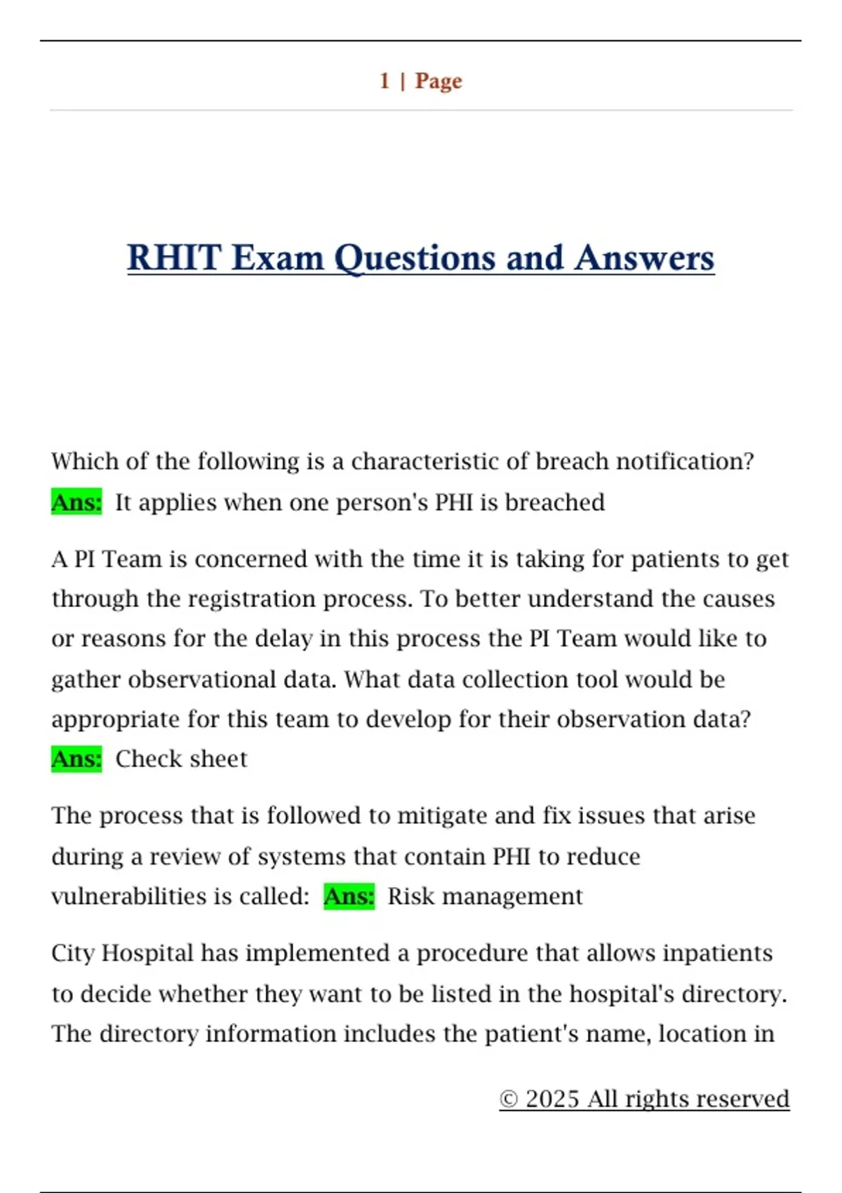 RHIT Exam Questions and Answers RHIT Exam Questions and Answers