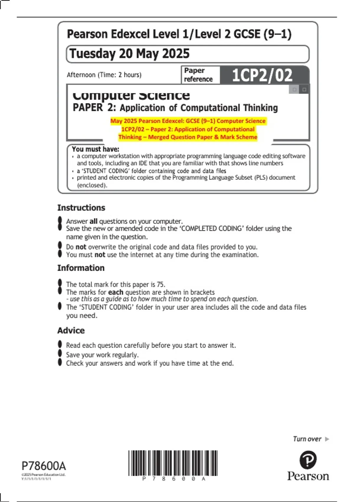 May 2025 Pearson Edexcel: GCSE (9–1) Computer Science