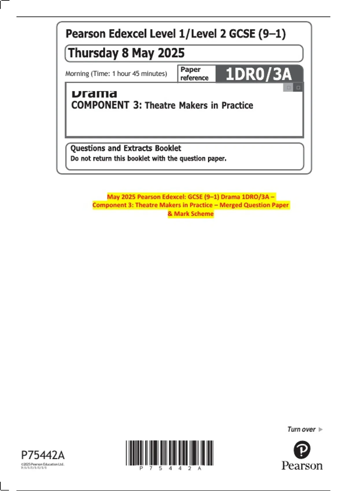May 2025 Pearson Edexcel: GCSE (9–1) Drama 1DRO/3A –