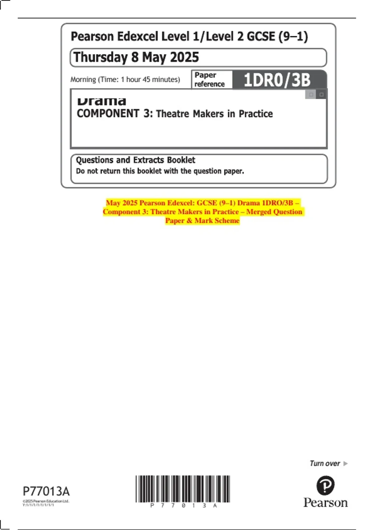 May 2025 Pearson Edexcel: GCSE (9–1) Drama 1DRO/3B –