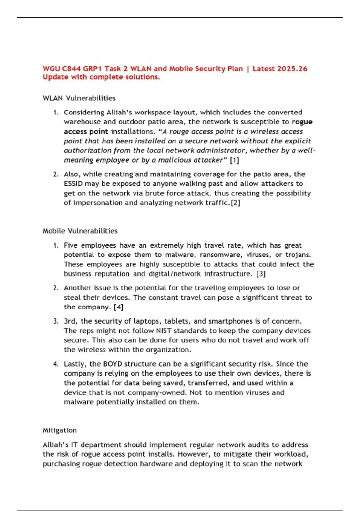 WGU C844 GRP1 Task 2 WLAN and Mobile Security Plan | Latest 2025.26 Update with complete solutions.