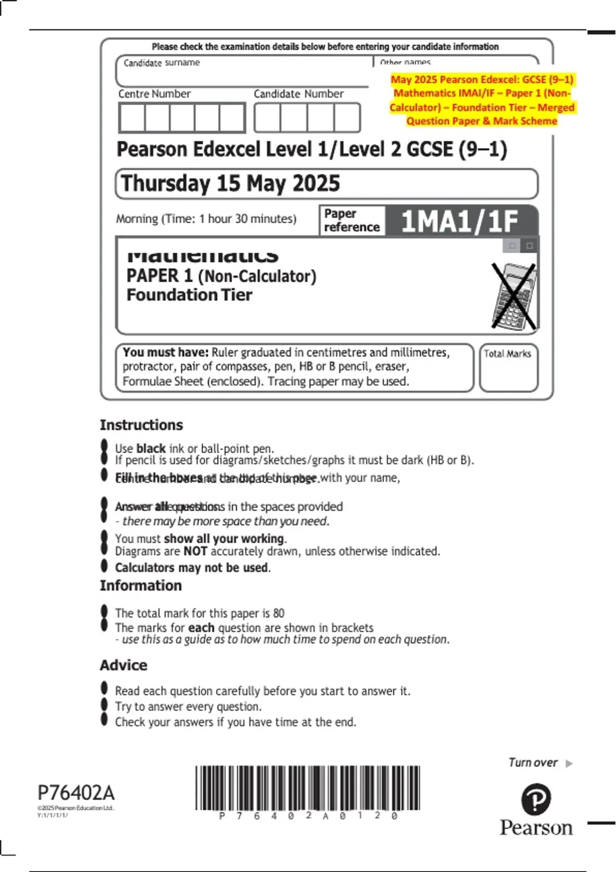 May 2025 Pearson Edexcel: GCSE (9–1)