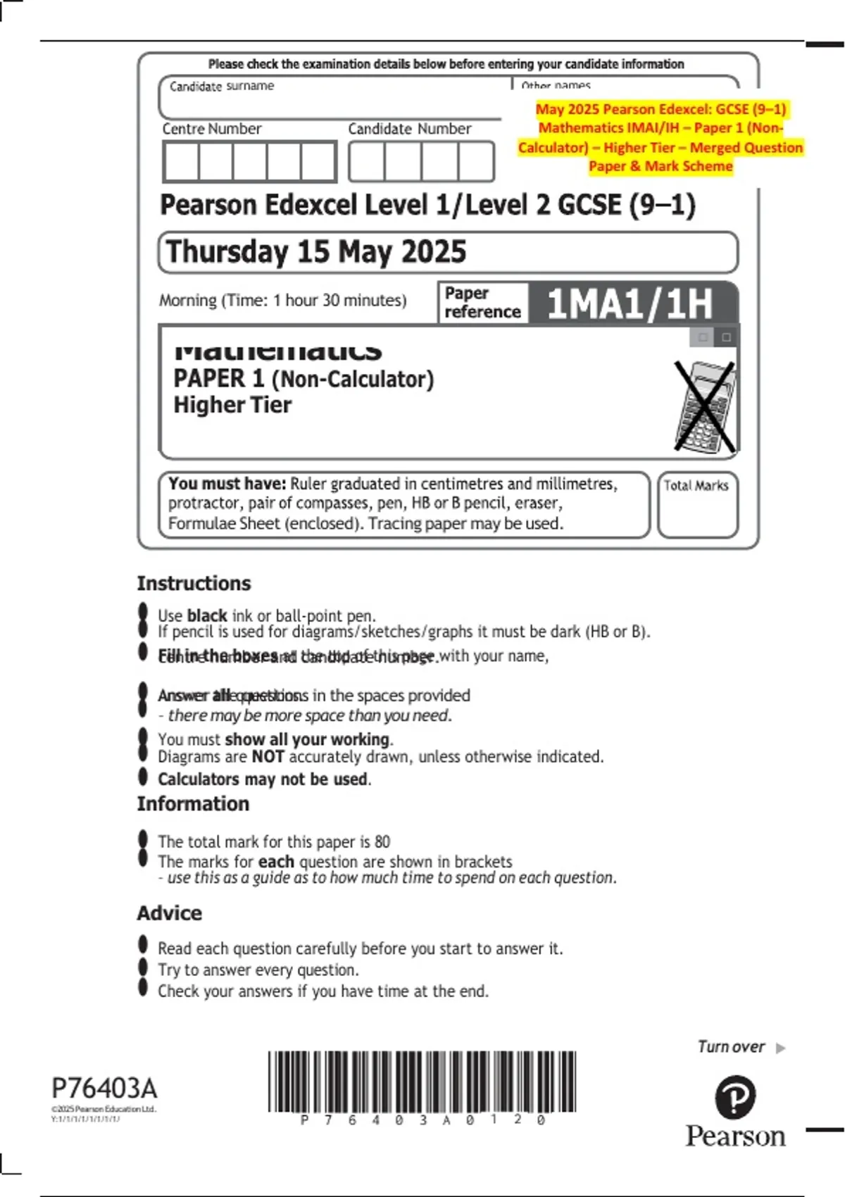Calculator) – Higher Tier – Merged Question