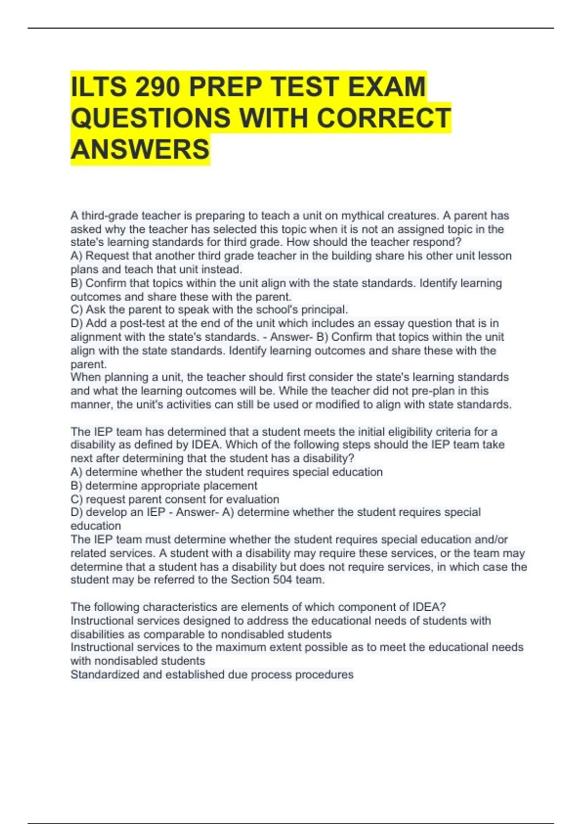 ILTS 290 PREP TEST EXAM QUESTIONS WITH CORRECT ANSWERS