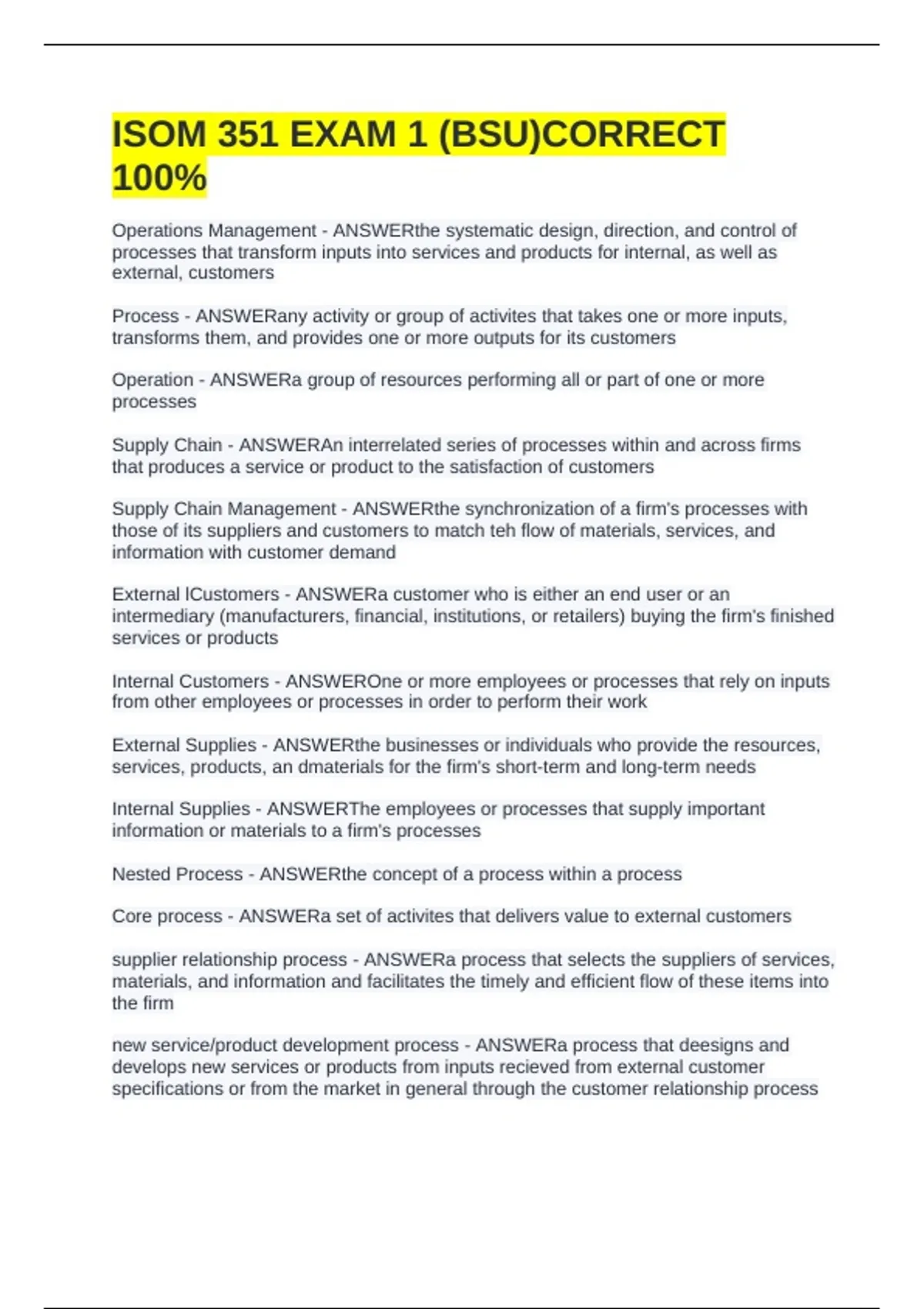 ISOM 351 EXAM 1 (BSU)CORRECT