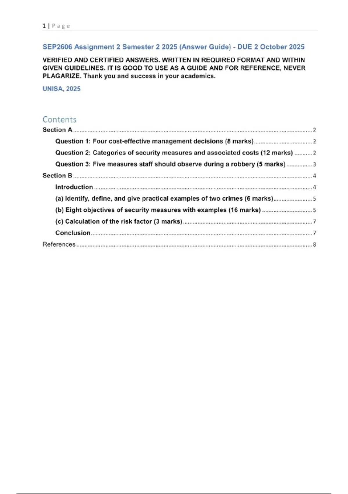 SEP2606 Assignment 2 Semester 2 2025 Questions with certified answers