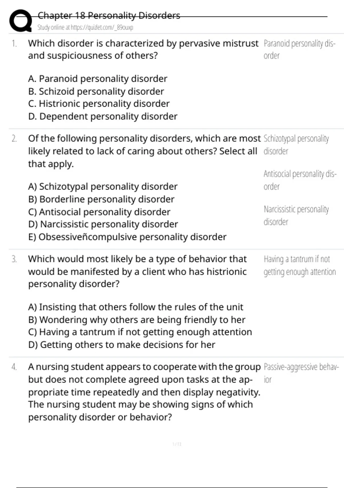 Chapter 18 Personality Disorders