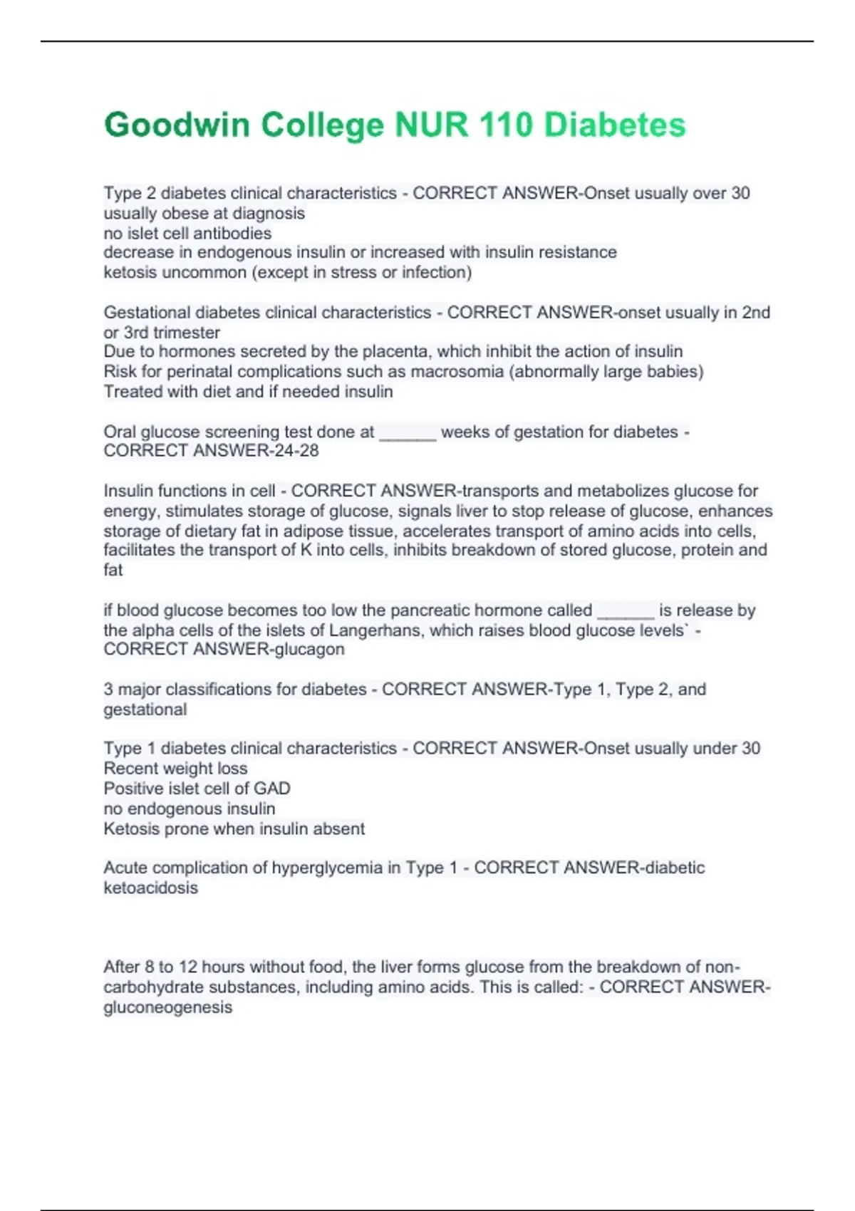 Type 2 diabetes clinical characteristics - CORRECT ANSWER-Onset usually over 30