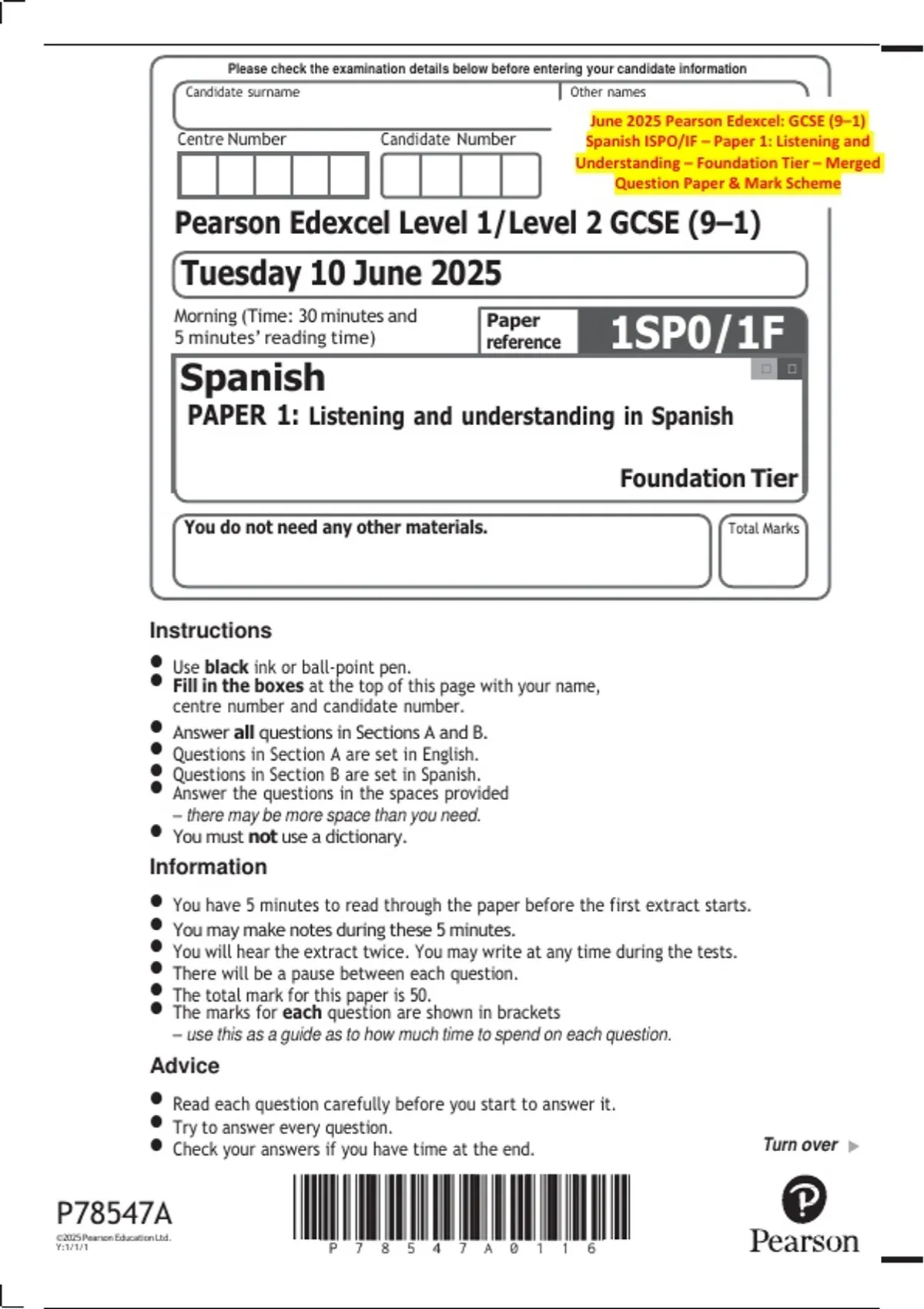 PAPER 1: Listening and understanding in Spanish