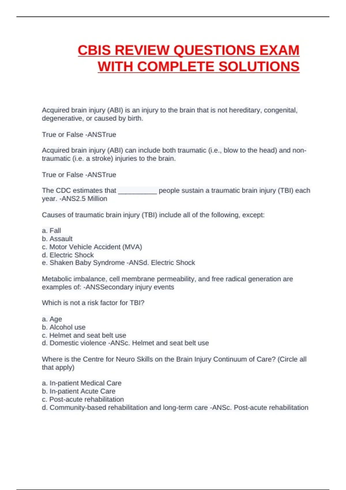 CBIS REVIEW QUESTIONS EXAM