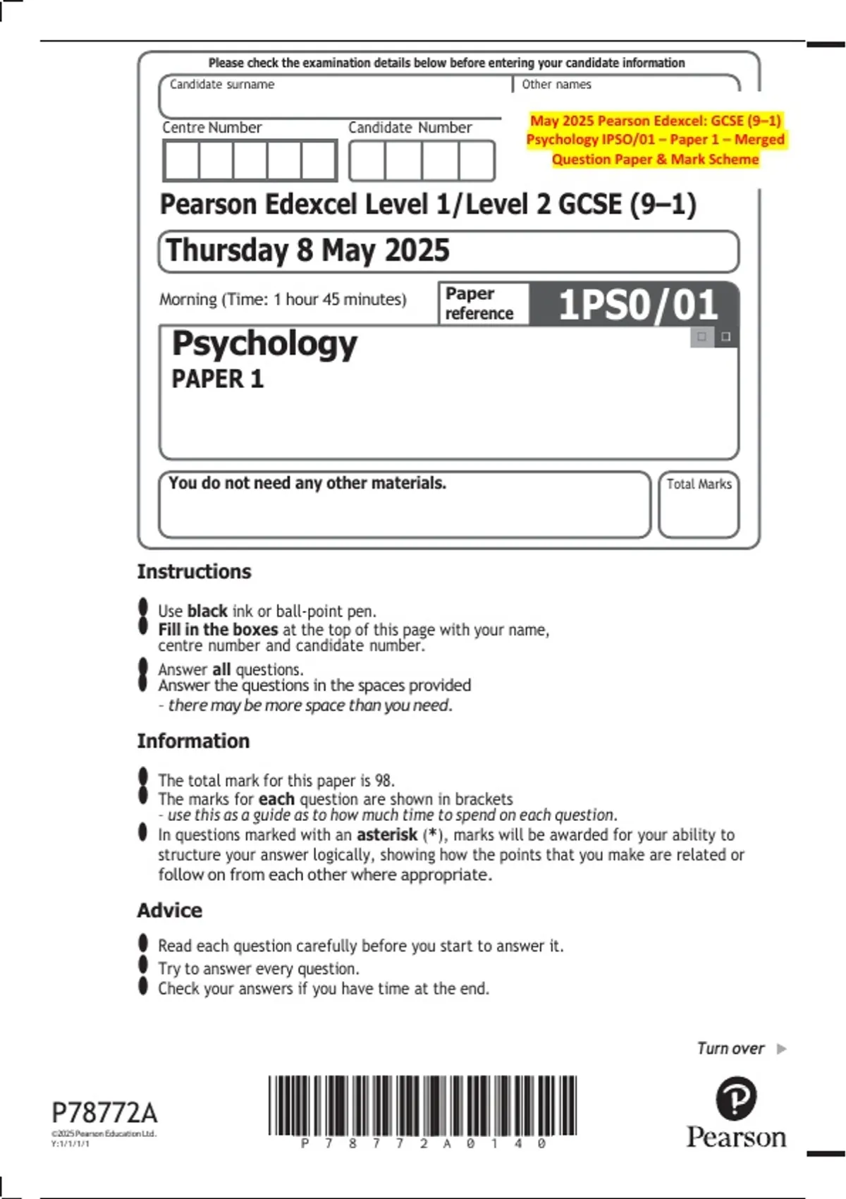 Centre Number Candidate Number May 2025 Pearson Edexcel: GCSE (9–1)