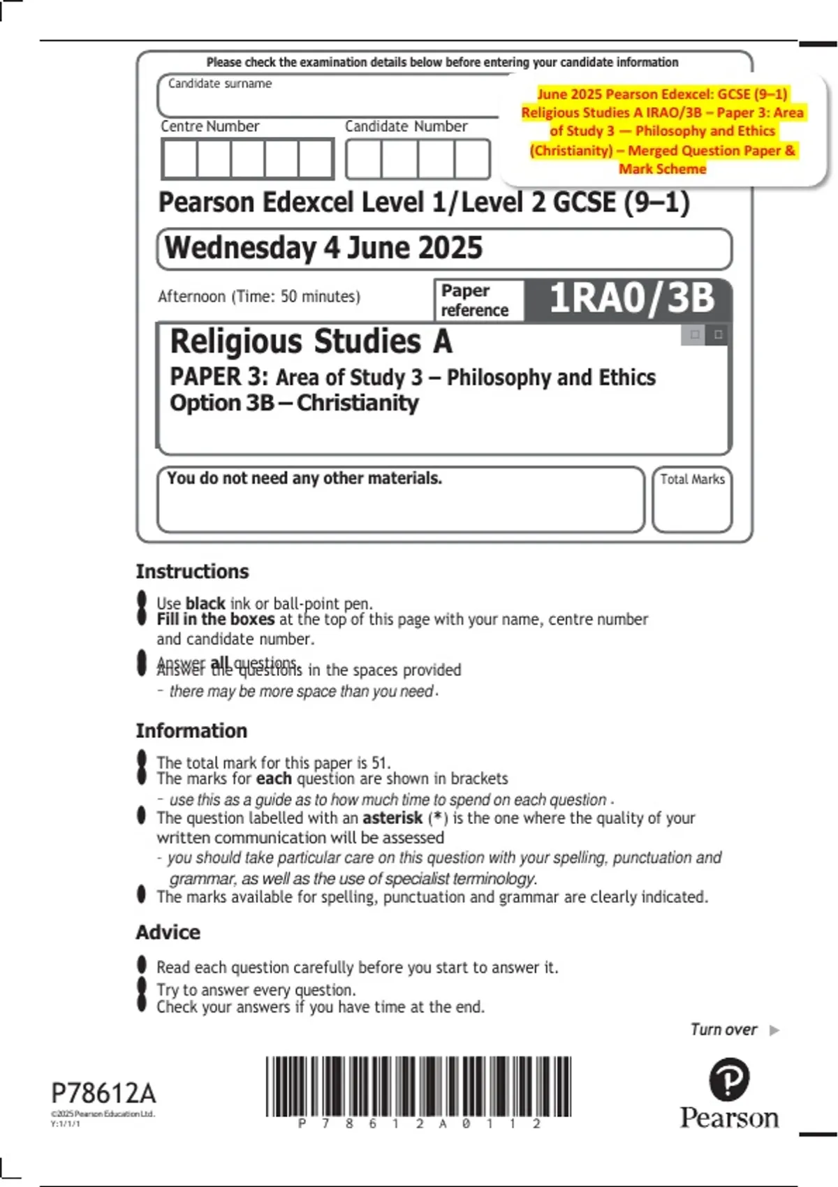June 2025 Pearson Edexcel: GCSE (9–1)