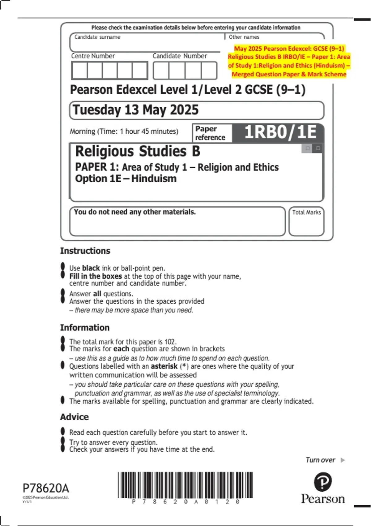 May 2025 Pearson Edexcel: GCSE (9–1)