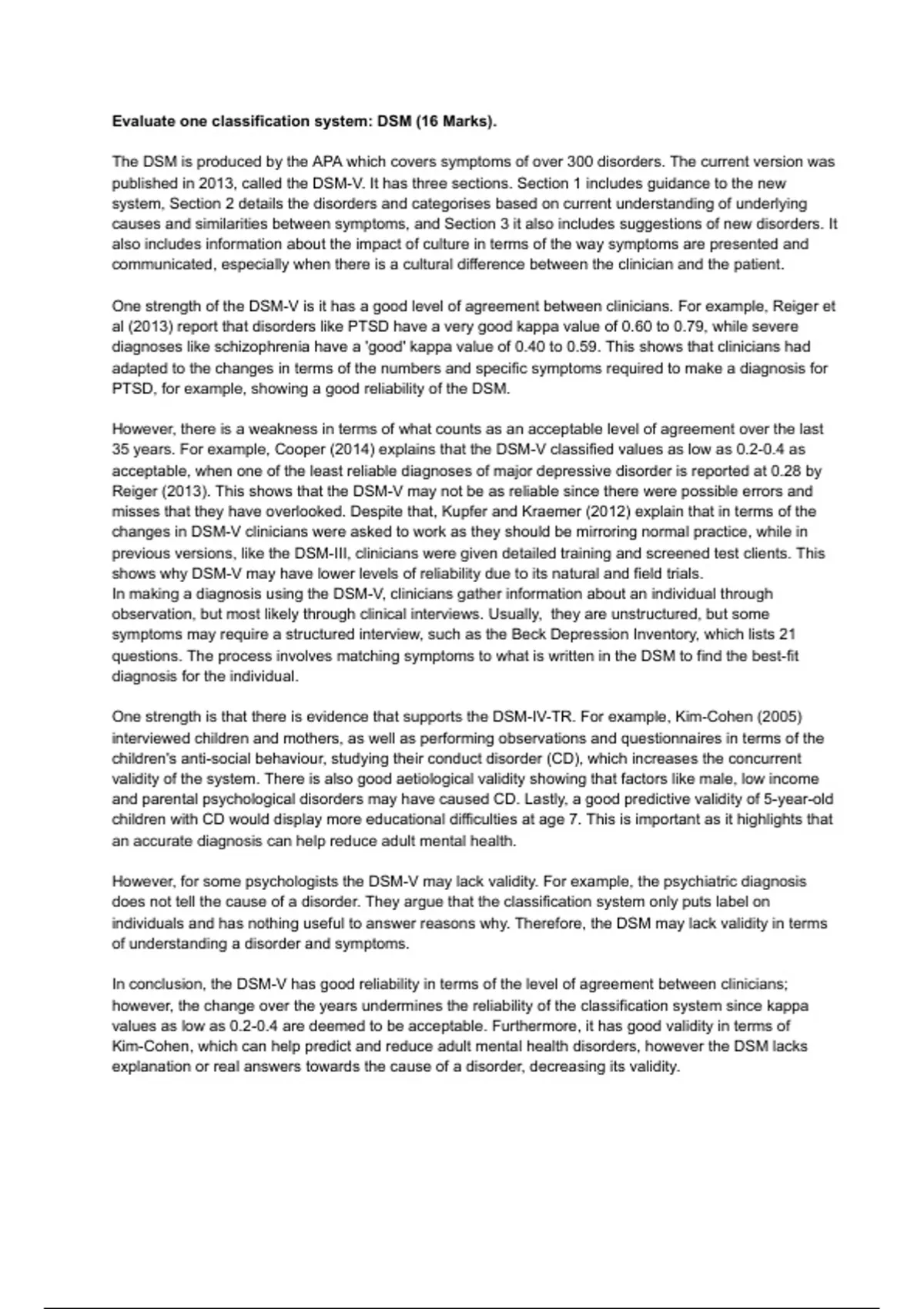 One strength of the DSM-V is it has a good level of agreement between clinicians. For example, Reiger et