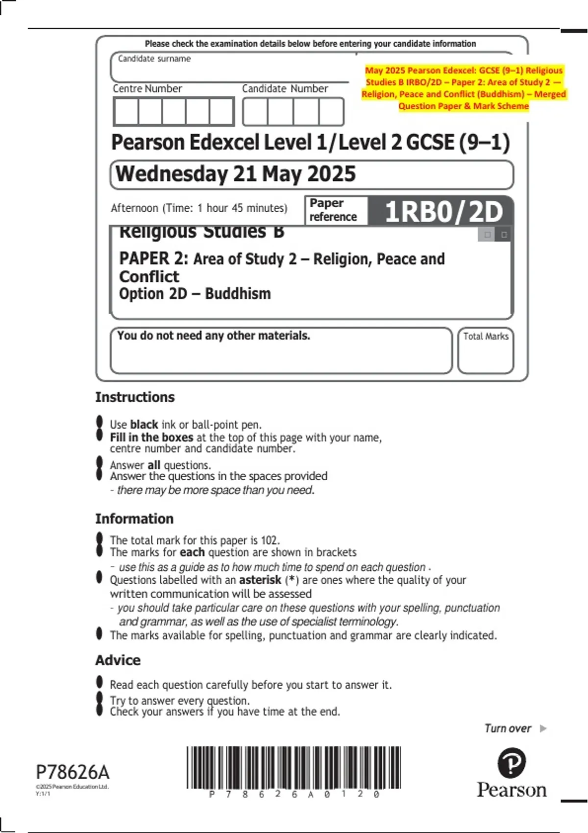 May 2025 Pearson Edexcel: GCSE (9–1) Religious
