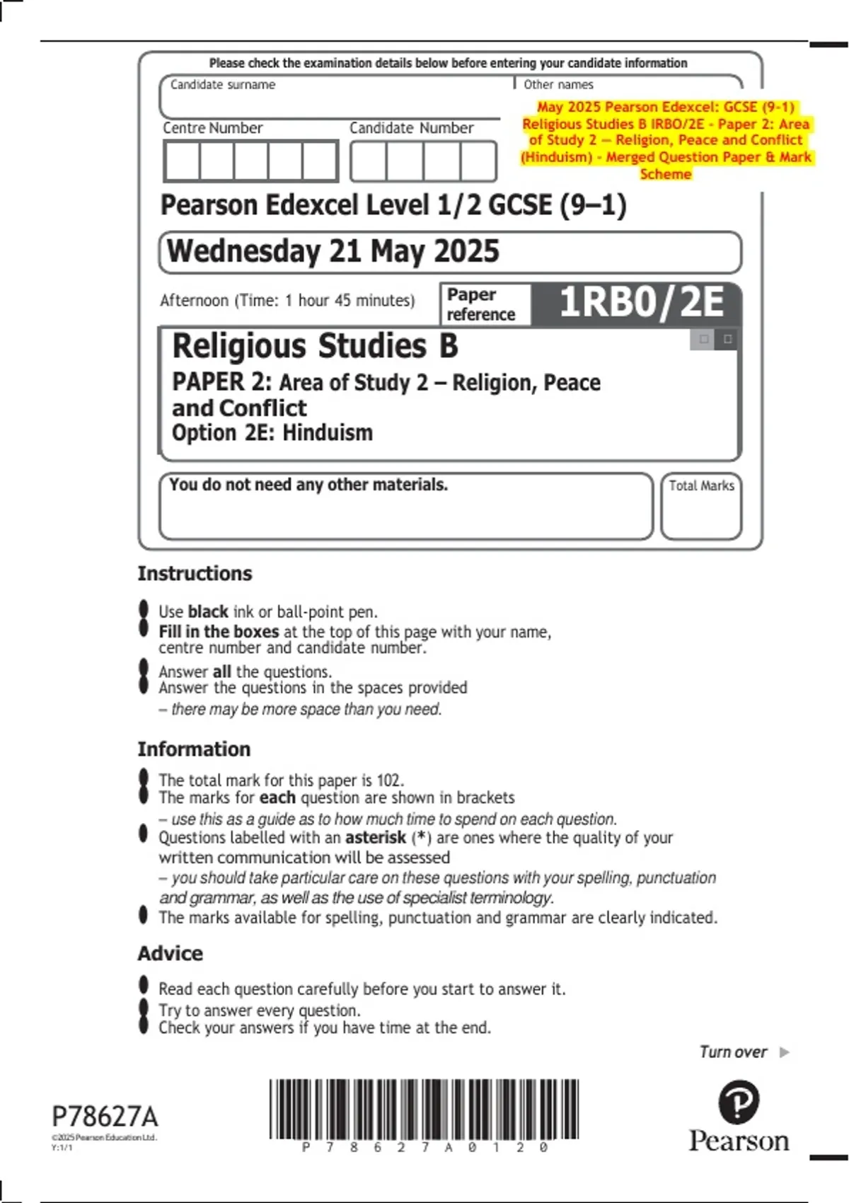 May 2025 Pearson Edexcel: GCSE (9–1)