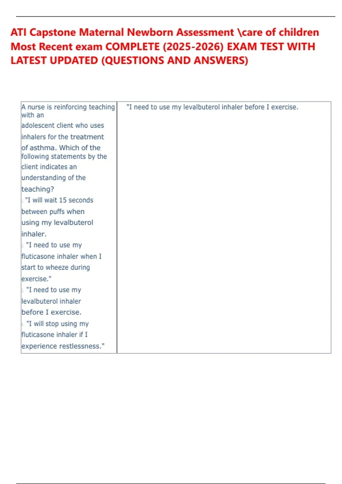 ATI Capstone Maternal Newborn Assessment care of children Most Recent exam COMPLETE () EXAM TEST WITH LATEST UPDATED (QUESTIONS AND ANSWERS)