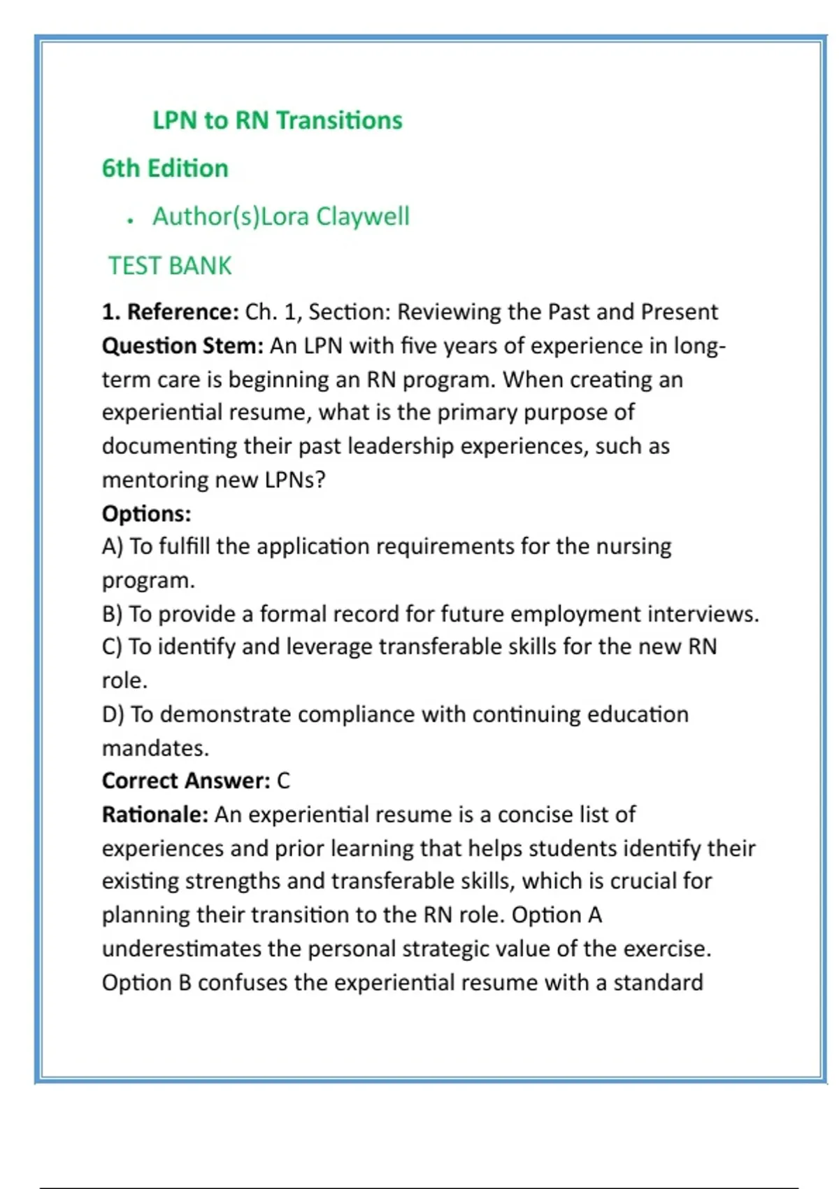 Question Stem: An LPN/LVN is planning to return to school to