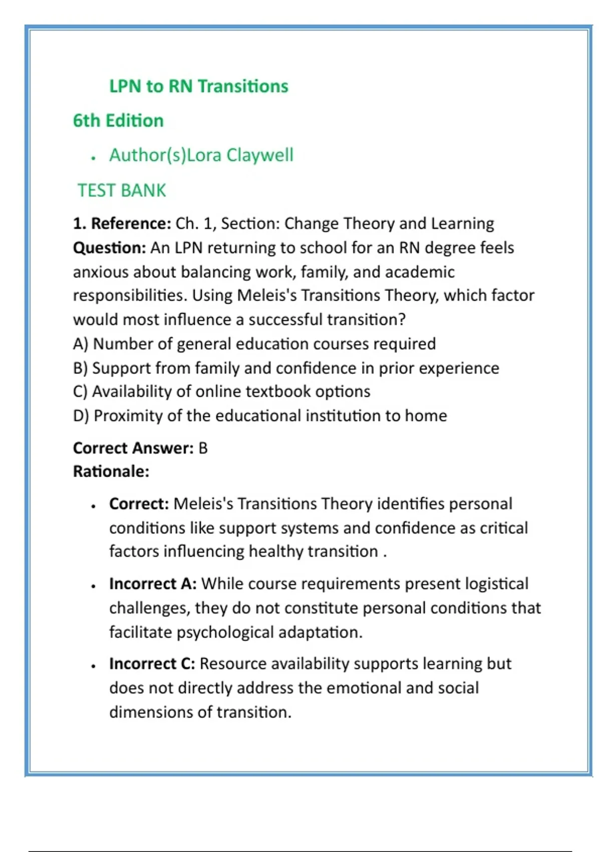 responsibilities. Using Meleis's Transitions Theory, which factor