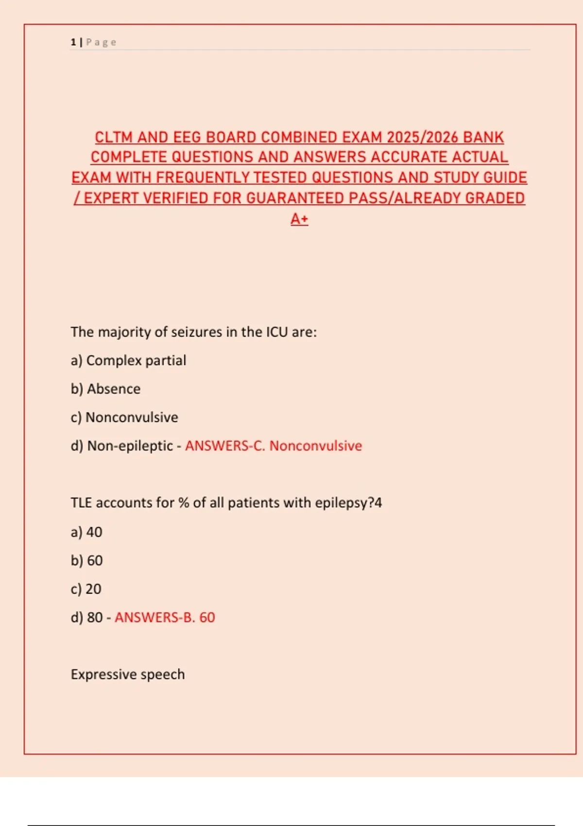 CLTM AND EEG BOARD COMBINED EXAM 2025/2026 BANK