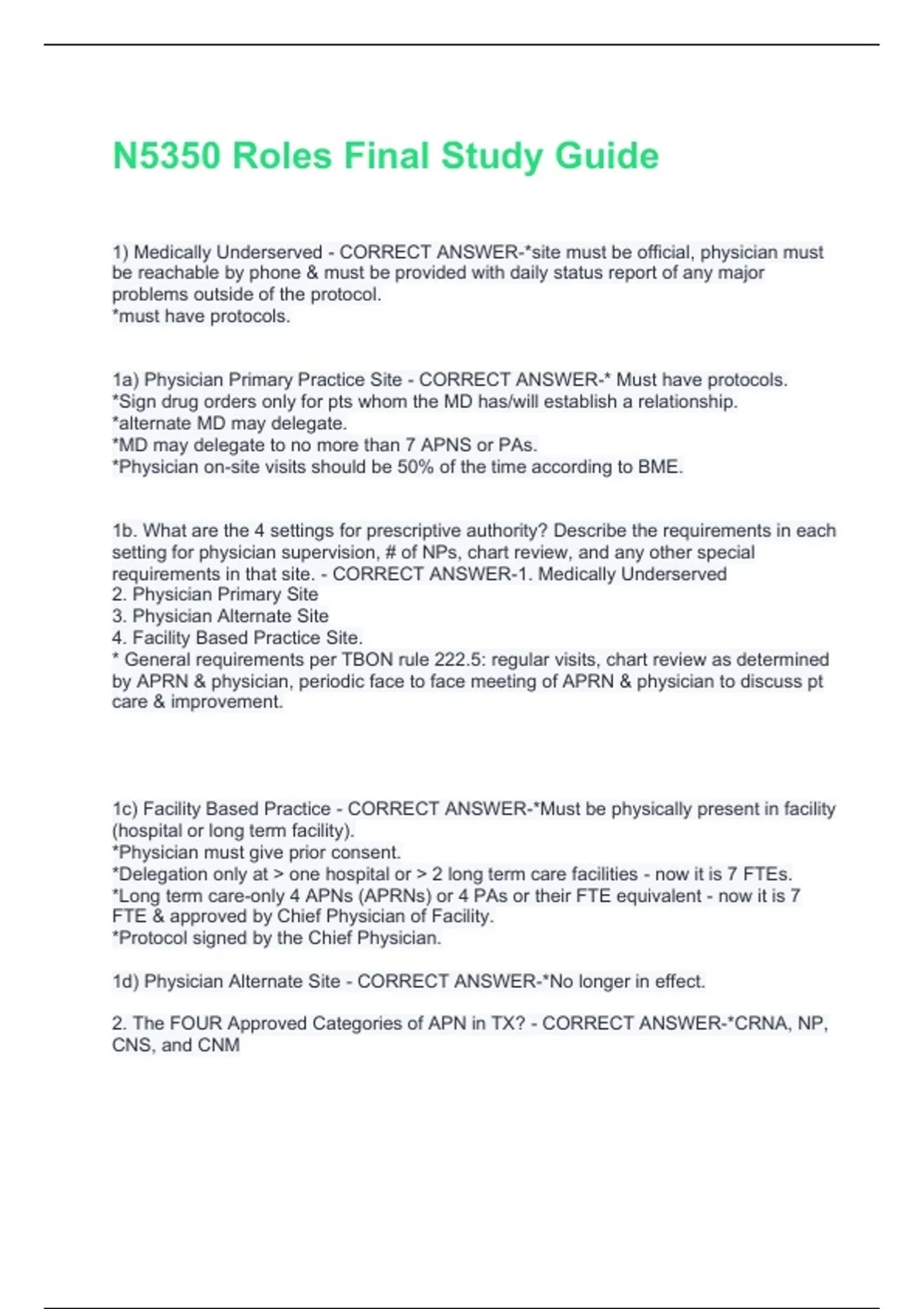 N5350 Roles Final Study Guide Verified Answers And Questions 2026