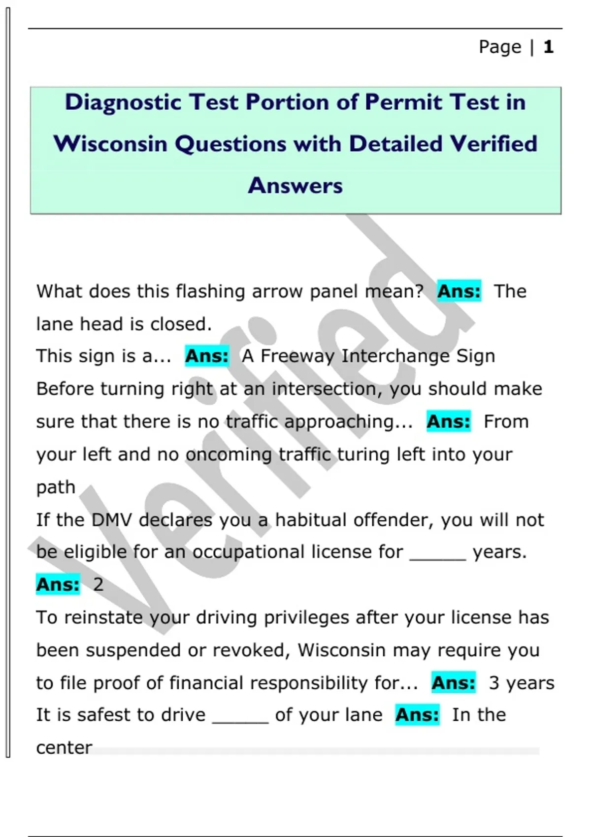 Wisconsin Questions with Detailed Verified