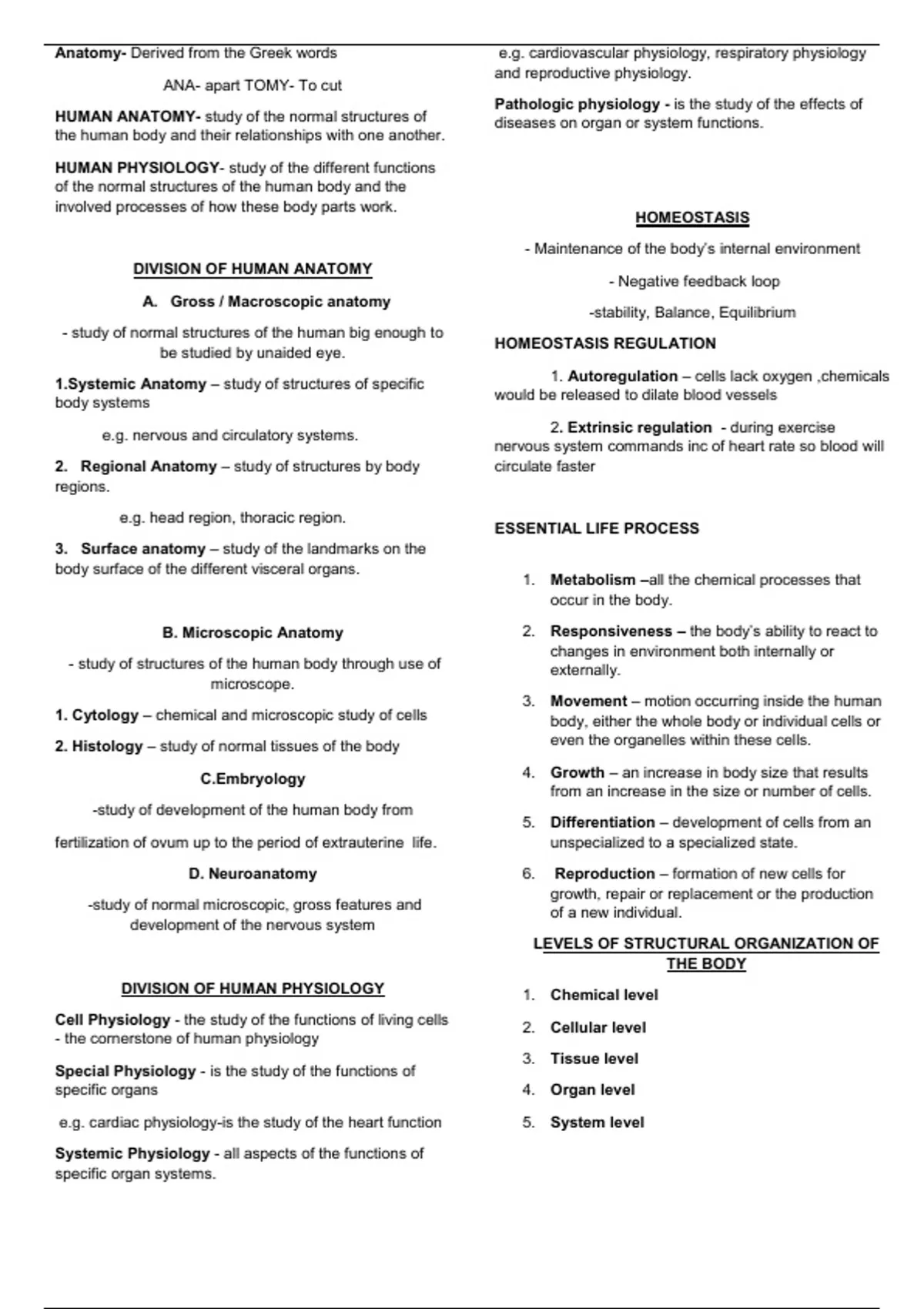 1.Systemic Anatomy – study of structures of specific 1. Autoregulation – cells lack oxygen ,chemicals