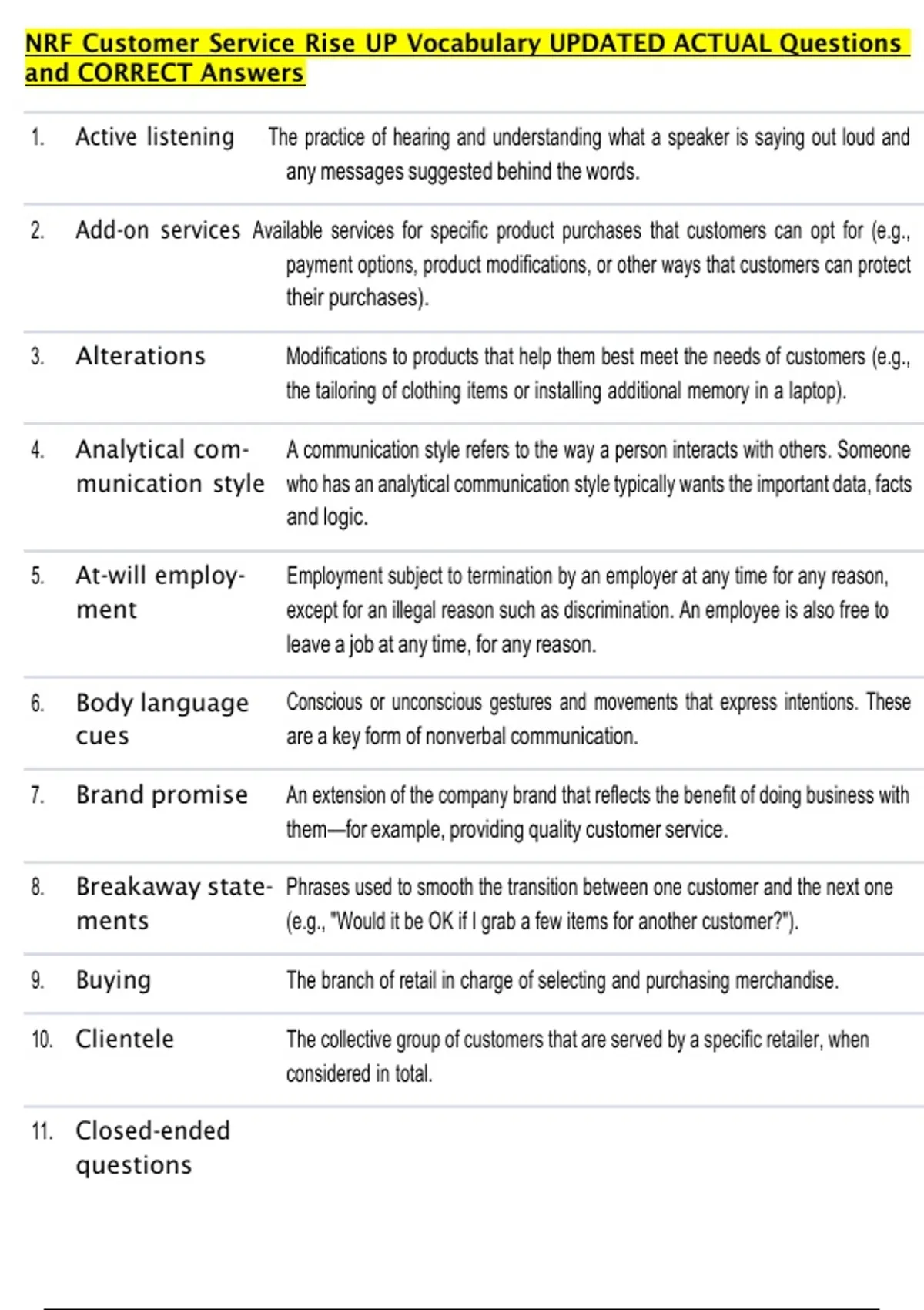 10. Clientele The collective group of customers that are served by a specific retailer, when
