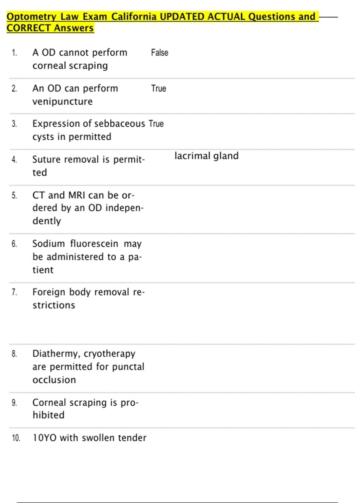 Optometry Law Exam California UPDATED ACTUAL Questions and