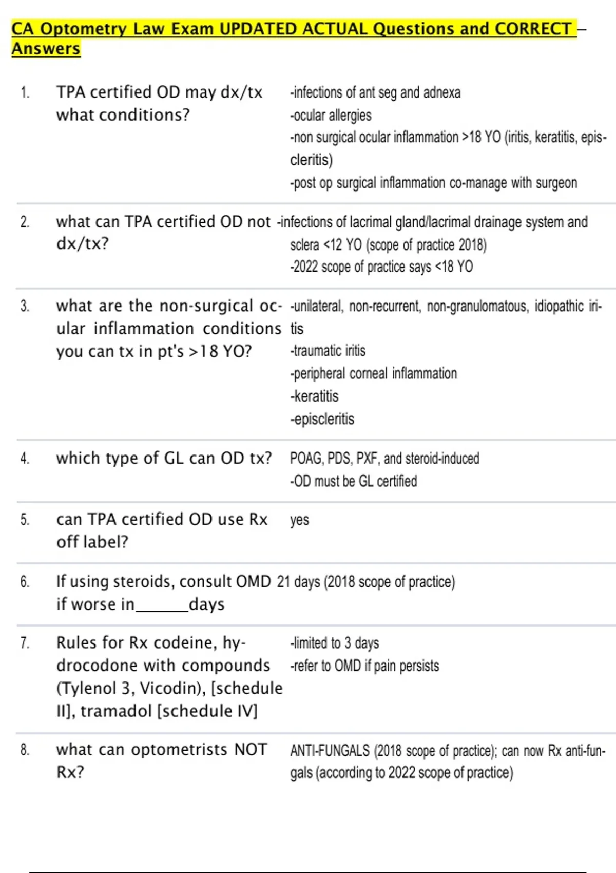 CA Optometry Law Exam UPDATED ACTUAL Questions and CORRECT