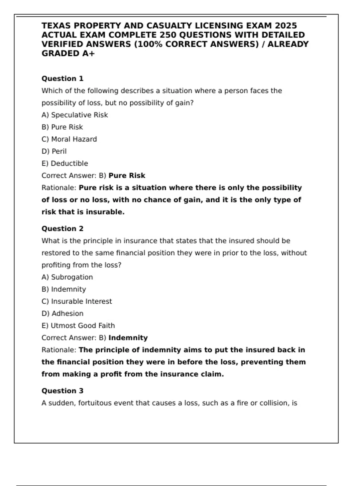 ACTUAL EXAM COMPLETE 250 QUESTIONS WITH DETAILED