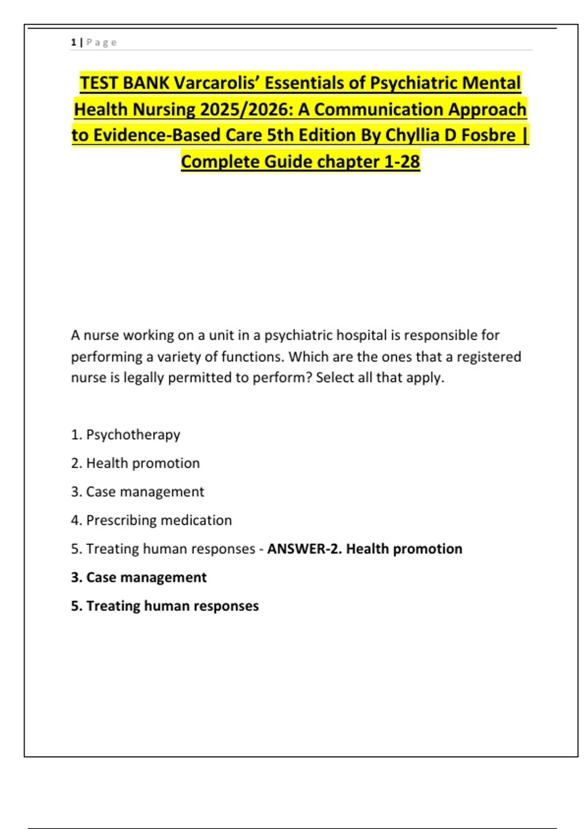 TEST BANK Varcarolis’ Essentials of Psychiatric Mental