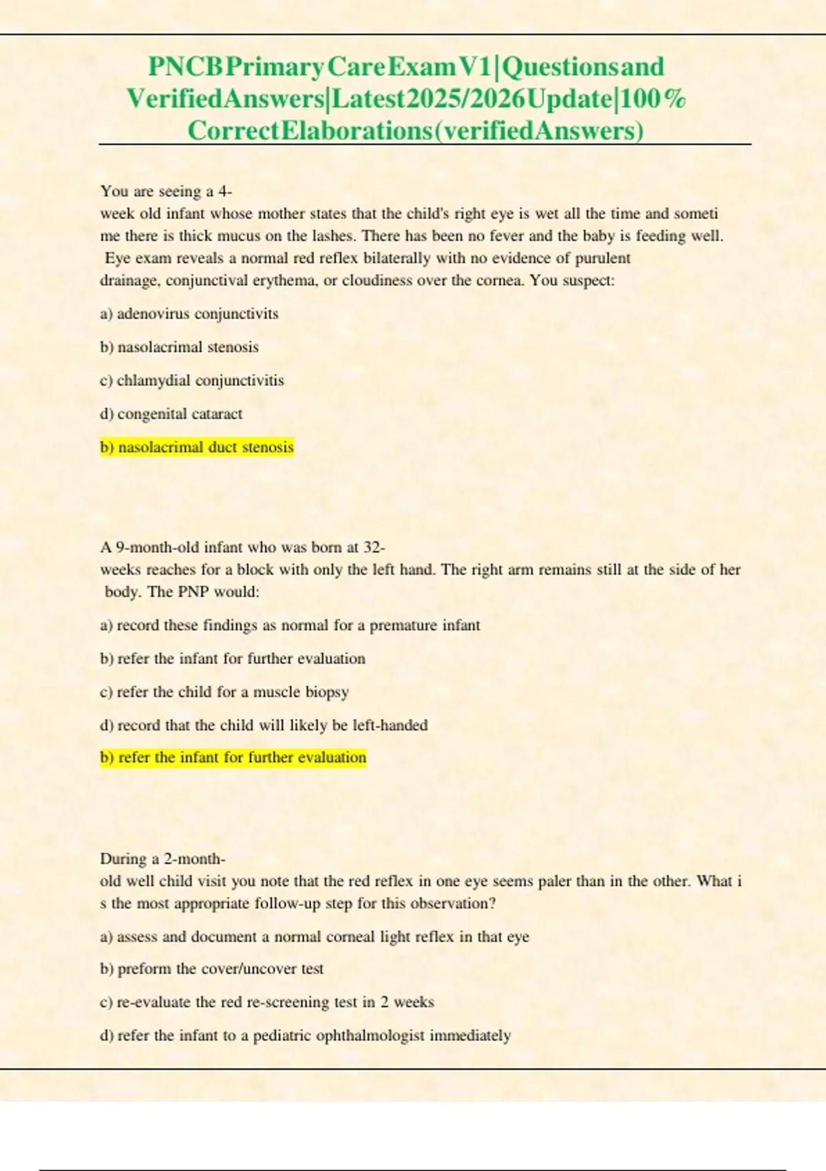 , PNCB Primary Care Exam V1 | Questions and Verifi